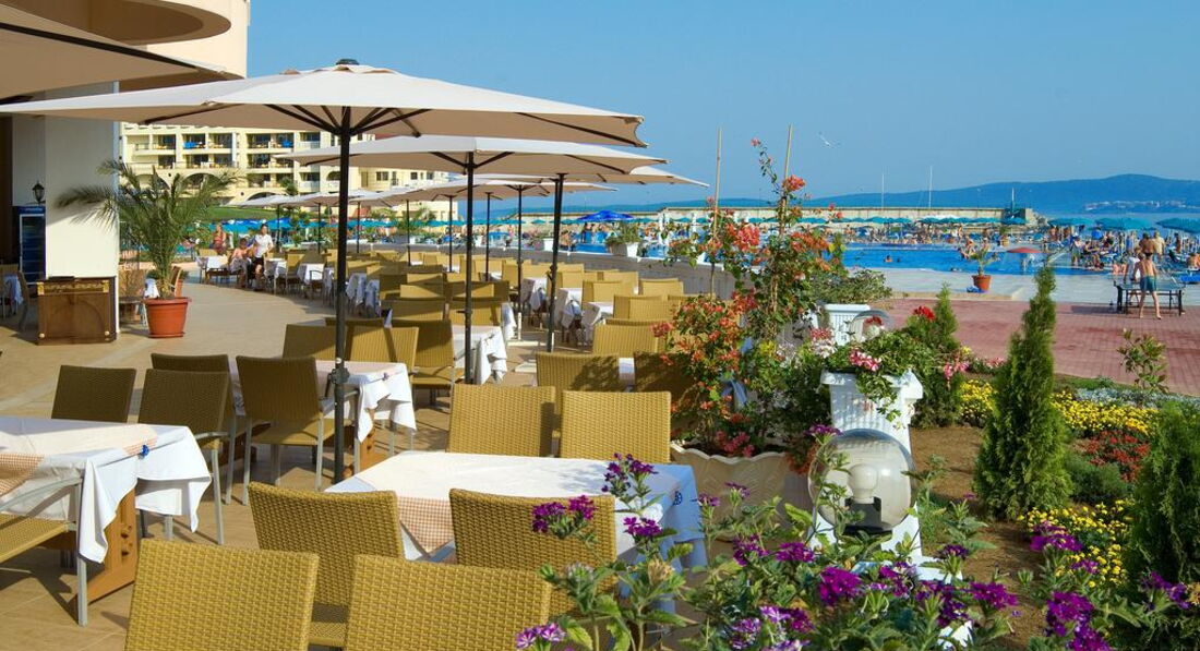 Что касается расположения отеля - расположен в стороне от населенных пунктов - из увеселительных заведений только те, что в отеле (для детей и пенсионеров), в этой связи и контингент семейный (большинство немцы, англичане, хотя есть и Болгары и Румыны и Поляки и Французы) в общем место не для тех кто любит потусоваться или "отжечь" - наевшись халявного спиртного в луже собственн...." в общем неплохое место кому нужен именно просто спокойный семейный отдых.