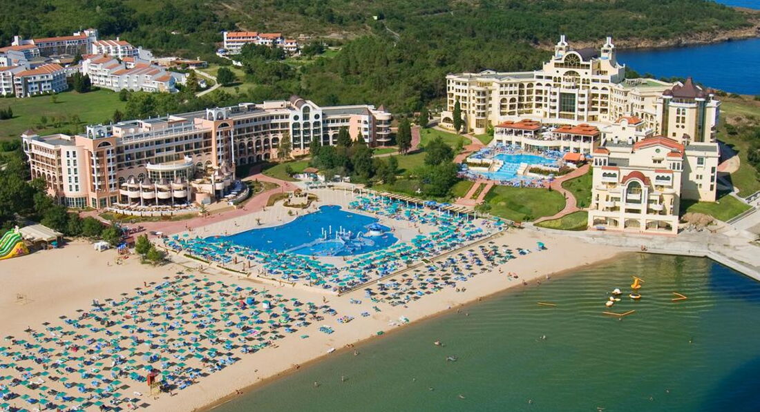 Слышала много нелестных отзывов про отдых в Болгарии, но приехав в Дюны - не разочаровалась ни капельки!!! Duny Royal Resort представляет собой большую закрытую территорию клубного типа с несколькими отелями, вход по пропускам, т.е. чужих нет! Вечерние прогулки по зелёной территории настраивают на романтическое настроение. Очень много разных развлекалок: спортивные занятия по утрам (фитнесс, аква-аэробика, водное поло, теннис и пр.), вечерние шоу-программы (концерты в амфитеатре, дискотеки, живая музыка), для детей мини-клуб( один раз оставляли 3-хлетнего сына на час).