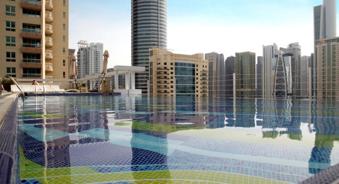 Провели свой первый незабываемый отпуск в Эмиратах с молодым человеком! От отеля осталось хорошее впечатление,но от четырех звезд я ожидала немного другого! Скорее всего цена завысила от того,что отель расположен в новом, престижном районе Марина. Отель городского типа,очень маленький! Прилетели мы в 7:00 утра а в отеле уже были в 9:00,но так как заселение только после 14:00 не под каким предлогом нас не заселили. Переодевшись в туалете,и оставив чюмоданы в специальной комнате хранения,мы отправились на пляж. Не зная толком куда идти,мы спрашивали у местных жителей и они любезно нас направляли! На пляже провели время замечательно,вода прохладная но потом привыкаешь! Катались на водных квадрациклах,прям на пляже есть парень предлагает стоит это удавольствие стоит 100 дирхам 15 минут. Народу на пляже очень мало,больше местных! Пробыв 4часа мы направились обратно в отель! Когда нас заселили приняв душ,сами того не заметив как сгорели ужасно! Даже не думала,но в Эмиратах очень активное солнце,в первые дни нужно быть очень аккуратными!