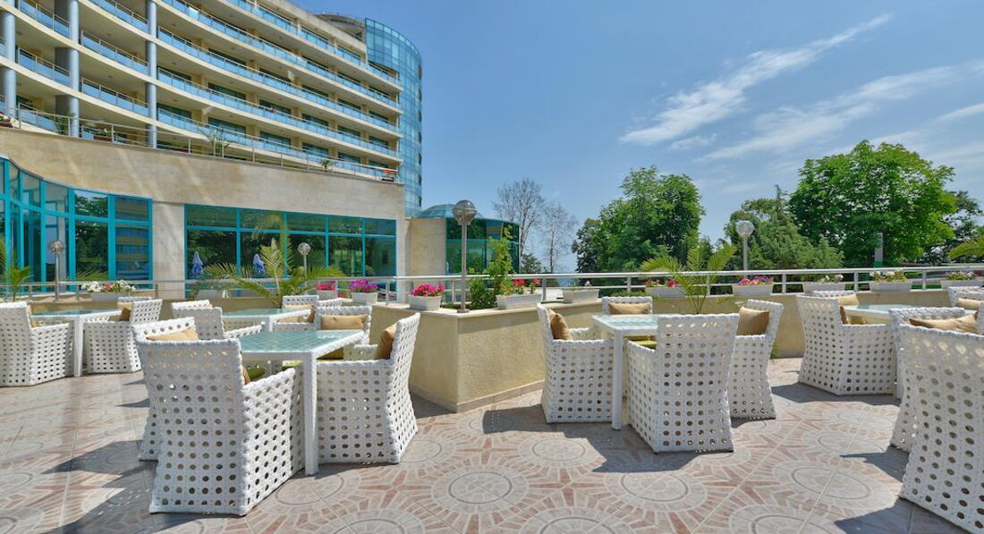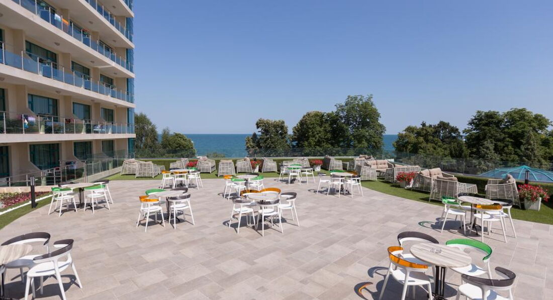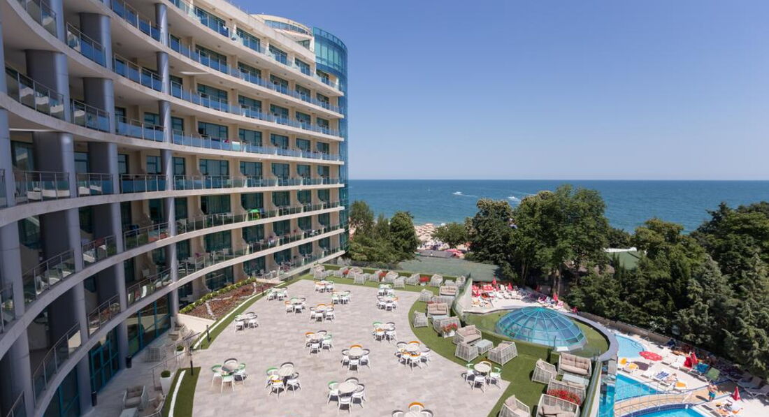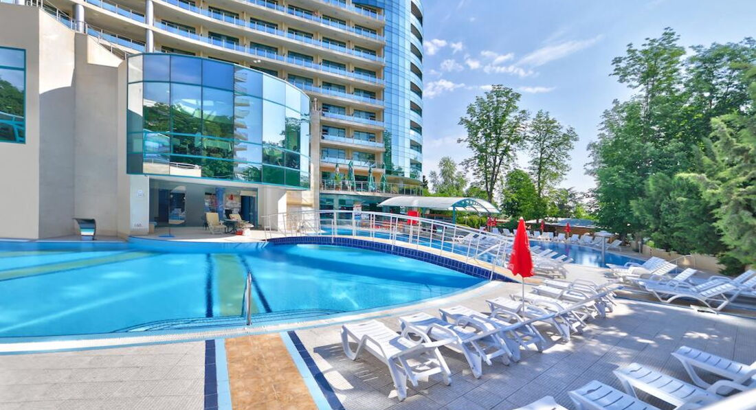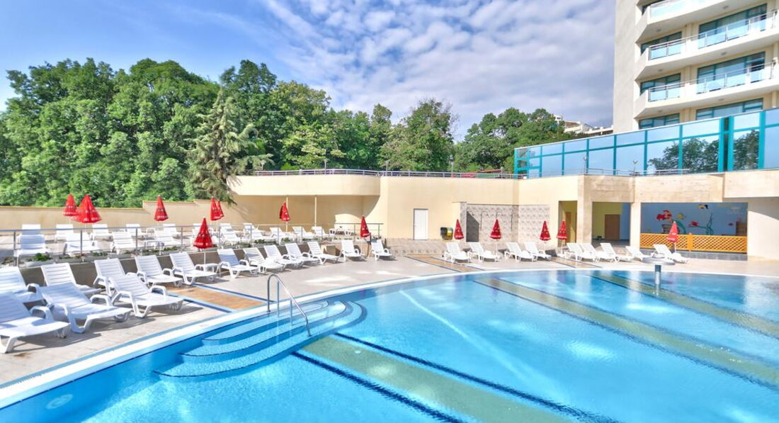 Достойный отель в центре курорта. Отдыхали с двумя детьми 23 и 6 лет. Обоим было интересно. Двухкомнатный номер , очень просторный и чистый. Свежий ремонт. Все две недели штормило. Иногда купаться в море запрещали вообще, но возле бассейна было тоже хорошо. Август был не жаркий, весь день можно было провести на воздухе. Если не лень, можно ходить на ревьеру купаться. Все пляжи платные. От Марины по пляжу влево , метров 500, там волнорез и волн нет. Детская площадка возле ресторана маленькая, вход на нее через гостиничный корпус 2 этажа. Младший ходил только на детскую дискотеку, днем анимация слабая. Старший ходил везде. Вокруг масса ночных клубов в шаговой доступности. Ближайший в соседнем отеле. Все на очень приличном уровне и по сравнению с Эстонией ооочень дешево. В самом отеле цены на услуги европейские. Делала маникюр - очень средне, можно делать только при большой необходимости. Питание отличное, обслуживание добросовестное, все стараются и это видно. В ресторане можно попасть на час пик - все столы заняты. Такое за две недели было у нас пару раз. Приходилось есть на терассе ресторана. Там столики всегда свободны, но жарко. Еды было предостаточно. Очень вкусно и разнообразно. Детского меню нет. Ребенка лет с 4-5 лет накормить можно спокойно, в более раннем возрасте - сомневаюсь. Хотя, детей было много , разного возраста, от голода никто не умер! Что касается немцев. Немцы были , бухали, никому не мешали. Ходили пьяные, тихие, спали возле бассейна. Но какие немцы могут сравнится с русскими! Наши соседки были три русские девушки , в поисках личного счастья. И когда они это счастье нашли - оно бухало у них всю ночь и орало так, как будто девушки решили его расчленить. Вопрос улаживали полюбовно, уладили к 4 часам утра. И за две недели это было только раз. В остальное время было тихо. Закрыл балконную дверь и как в сейфе, звукоизоляция хорошая. Такси возле отеля дорогое. Мы пользовались таксистом , телефон которого дал тур.оператор. В половину дешевле. Деньги можно снять в банкомате возле гостиницы. В Варну ездили один раз сами в Приморский парк. Там дильфинарий, маленький зоопарк, погулять можно. Но совок и выглядит все по совковому. На экскурсию ездили на камни и болгарскую деревню - очень понравилось! Советую! Так же советую взять необходимые лекарства. От температуры, боли, поноса, кашля и т.д Мы переболели все , видимо, аклиматизация. У многих болело горло и была температура. Нормальные врачи только в Варне. {удалено модератором как информация от з-х лиц} А вообще - то все понравилось, надеюсь приехать сюда еще! Отель хороший, советую всем!