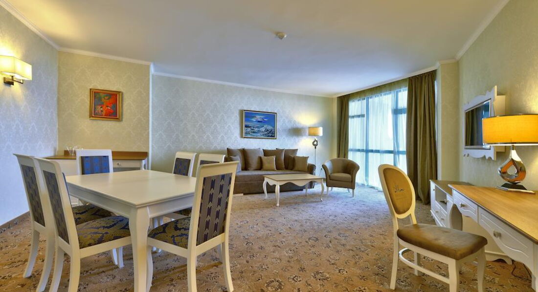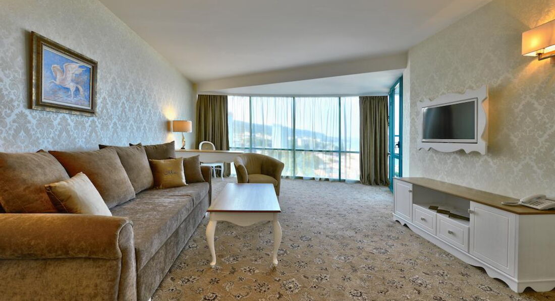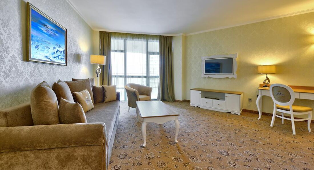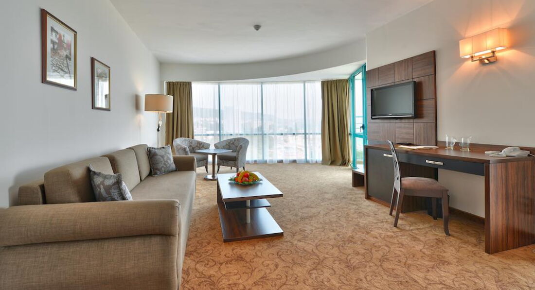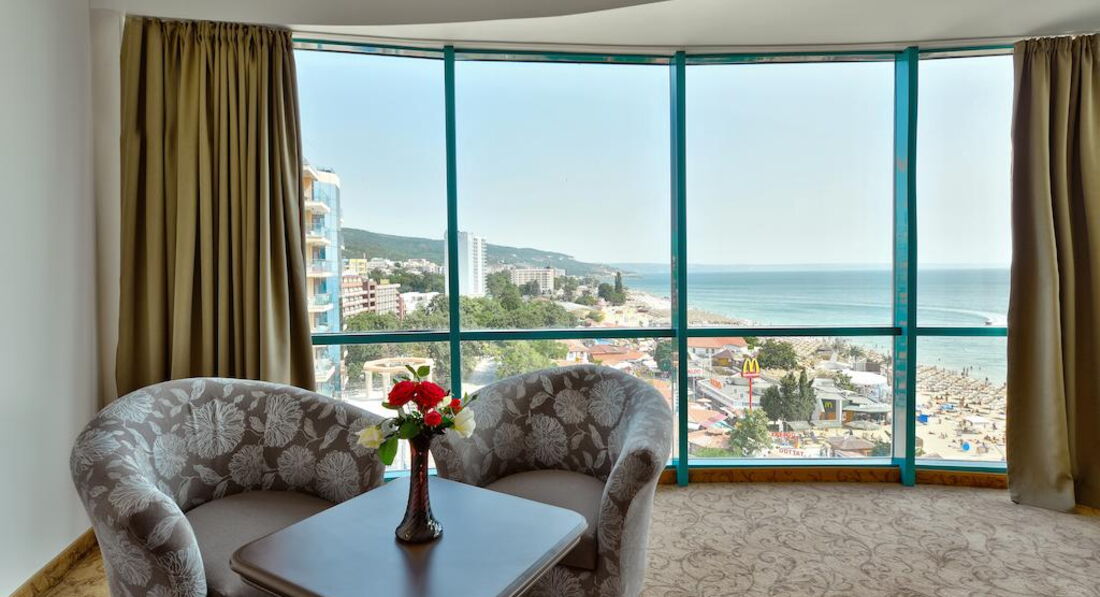 Считаю, что нам очень повезло с номером: двухкомнатный, с большим балконом, соединяющим комнаты, панорамный вид на побережье. Но... территория самого отеля очень маленькая, бассейн похож на лягушатник, на пляж приходилось ходить через дорогу - с детьми это не очень комфортно. Есть где прогуляться вечером - набережная вполне приемлема для этого, но сервис больше напоминает наш Краснодарский... Так было, по крайней мере) Возможно, сейчас все стало выше уровнем. А вот ознакомительная поездка в Несебр очень впечатлила!