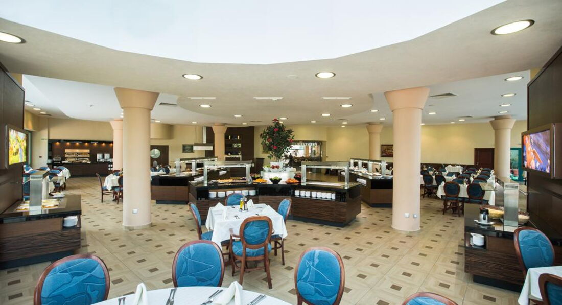 Ресторан-столовка испортил все впечатление. И интерьер страшненький, столов естественно не хватало, выбор блюд очень маленький. Рыба была крайне редко и никакая. Поесть то можно, все свежее, но не как в хорошей турецкой пятерке, да и в болгарский четверке (Planeta) лучше кормили. На ужин даже идти не хотелось, потом уже часто стали ходить в ресторанчики возле пляжа, вот там было вкусно!