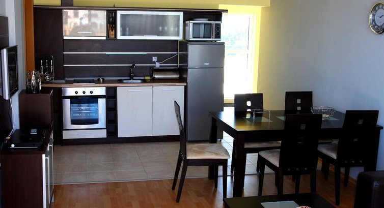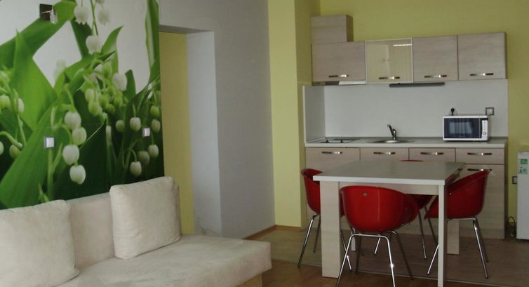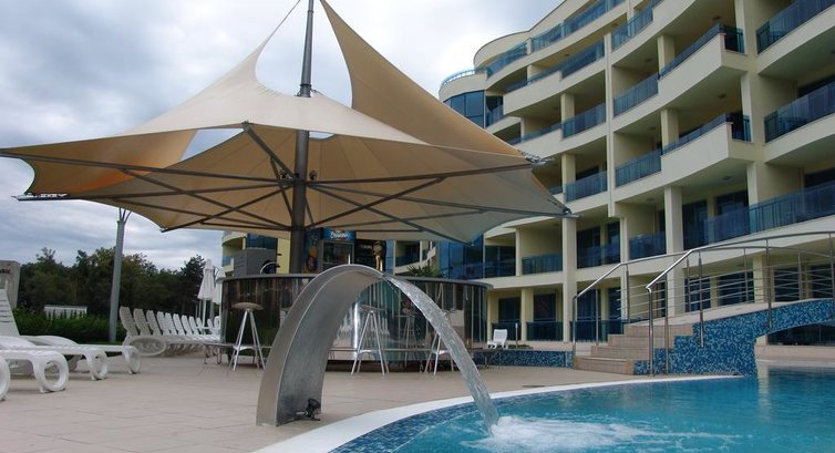 Сразу хочу сказать, что отель для отдыха с семьёй. Есть небольшая площадка с качелями и поле для игры в футбол, пара турникетов, настольный хоккей, магнитный футбол за 1 лев и детский клуб для малышей. Аниматоры - молодые болгарские ребята. Апартаменты действительно оправдывают своё название. Два санузла, миникухня, спальня для взрослых, спальня для одного и раскладной диван в общей комнате с кухней. Убирались каждый день. Бельё меняли раз в три дня. Предметы гигиены ежедневно. На ресепшене милые девушки, но не все всё знают. Поэтому лучше переспросить дважды у разных. Питание: у нас был завтрак, ужин. Но когда возникла необходимость поменять ужин на обед - без проблем на ресепшене выписали карту на смену ужина на обед. Завтрак стабильно яйцо в трёх вариантах - омлет, в крутую и всмятку, колбаса, паштет, хлопья, мюсли, овсянка и рисовая каши, сыр, помидоры, огурцы, масло, фрукты. Это всегда, по другому не бывает. Ужин суп, один вид рыбы, два вида мяса, овощи (в сыром и варёном виде), салаты, соусы, маслины, оливки, может быть переработанный омлет, пару раз проскачила мусака и лазанья, фрукты, три вида пирожных, мороженое всегда, напитки любые всегда. Повторюсь - по другому не бывает. Голодными не останитесь. Но что-то другое можно сходить поесть в любое кафе недалеко от отеля или в Ongal-барбекю на территории отеля. Хороший семейный спокойный отель. На противоположной стороне аквапарк. До моря 5 минут. Два лежака с матрацом, столиком и зонтом на берегу обойдутся в 24 лев. Можно, конечно, и со своим полотенцем и зонтом, но если просто на лежаке без зонта, то за двоих 16 лев. Болгария - красивая и достаточно дешёвая страна.