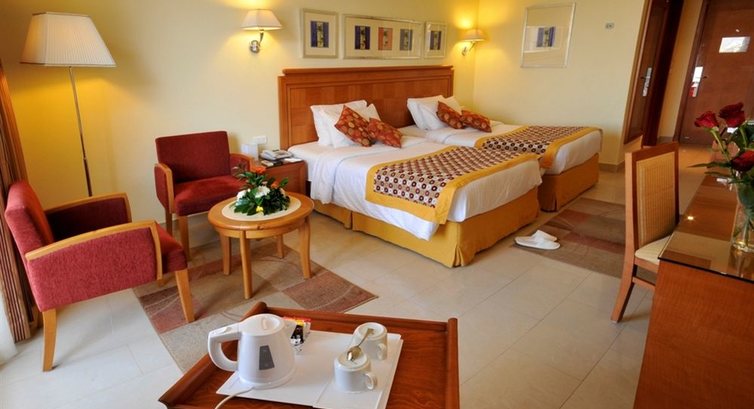 Приехали утром.сразу заселять сначало стали своих соотечественников и их было оооочень много.нас заселили после них часа через три.дали нам номер на 1 этаже.очень темное помещение.попросили за деньги поменять нам предложили на этом же этаже такой же номер.менять после этого не стали.больше все номера были уже заняты.в ресторан заходишь под запись,выносить ничего нельзя,у некоторых даже проверяли сумки.еда нормальная.уборка средне.полотенце меняли.бассейны хорошие.егептян было много.на русских смотрят как на зверей.море через дорогу.пляж хорошо.большой плюс есть где погулять вечером (наама бей) сувениры,бары,тц и т.д.