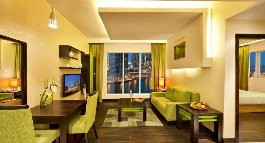 В данном отеле мы отдыхали уже в третий раз.В ноябре 2014 года,октябре 2015 года и в марте 2017 года.Данный отель нам очень нравится.Хорошее расположение-Дубай Марина.Набережная-можно погулять,посидеть в ресторане и просто совершить небольшой водный круиз.Рядом находится метро.На ресепшене приятный персонал.Всегда помогут по любому вопросу.Завтраки -фрукты,овощи,различная выпечка,горячие блюда.Все свежее и вкусное.В номерах чисто.Уборка каждый день.До моря можно на автобусе,который отправляется каждое утро от отеля.Можно пешком-10-15 минут-неспеша.В отеле Wi-Fi бесплатный.Хороший бассейн,где можно перекусить и пообедать.В каждом номере есть кухня-это вообще здорово.Большой холодильник,плита,стиральная машина с сушкой,утюг,гладильная доска,микроволновка.Это очень удобно.Единственное.....руководство отеля никак не реагирует на постоянных гостей.Хотя в других отелях есть комплимент от отеля для постоянных гостей.И слегка омрачил отдых-номер,в котором мы проживали-211.Окна выходят на бассейн,но.......граничат с крышей ресторана,круглосуточно работает вентилятор.Днем нас в номере не было,а вот ночью был дискомфорт от шума вентилятора.