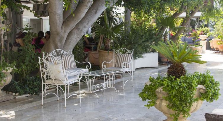 Здание отеля в греческом стиле с крохотными балкончиками. Из ресторана на крыше открывается отличный вид на марину (порт). Территория отеля очень мала - только возле бассейна. Но бассейн отличный с джакузи, всегда есть свободные шезлонги, пляжные полотенца без залога, персонал раздает шашлычки из арбуза и дыни бесплатно, протирает солнечные очки.