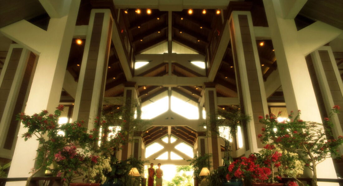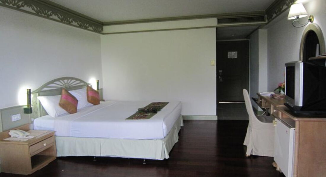 Отдыхали в отеле 15 дней. Приехали в 3 часа ночи, заселили мгновенно. Номера чистые, в целом уютные. Ежедневные качественная уборка, смена полотенец, зубных щёток,пасты,мыла, шампуня, геля для душа, шапочек для волос, стирального порошка и ватных палочек )). Постельное бельё - не поняли, каждый день его меняли или нет, но каждый раз после уборки номера оно было чистое и проутюженное, без единой морщинки и складочки. Персонал очень приветливый, в первое время мы даже оказались не готовы к постоянным широким улыбкам и "хэллоу!", не успевали взаимно отреагировать. Сейф на ресепшене бесплатный. Проблем никаких ни с чем не возникало. Никакого воровства, как я читала про другие отели. Бесплатно сайна, катание по реке на лодках (самостоятельное, в жилетах, течения нет,отельная акватория реки небольшая), брали велосипеды (стоят внизу рядом с ресепшеном, разрешения не требовалось), ездили по территории и в магазины. русских ТВ-каналов нет, хотя 1 был гарантированно обещан. В полном восторге от территории - красота неописуемая, чистота. Посередине территории река + бассейн. Бассейн большой и хороший. Однажды нам даже включили водопад с башенки, так мы узнали, что он есть ))))). С удовольствием использовали как массаж для воротниковой зоны и живота. Так что требуйте, чтоб он работал! Цветы, пальмы..... Видела кажется варана - метрового, прополз по лужайке и скрылся в речке. Друзей в саду встретила ватага обезъян, ворующих кокосы: ощерились, заорали, друзья побежали, обезъяны гнались за ними метров 30. Хохота было!!!!! Экскурсии в отельном бюро дорогие, брали на АО-Нанге. Есть своё такси. Кондёры работаю в разных режимах, установлены вдали от кроватей, утоплены в стене и замаскированы декоративной решёткой, так что никаких неудобств не причиняют. По нашей просьбе нас мгновенно пересилили в другой номер, с чудным видом на реку, бассейн и сад. Поставила "3" за размещение отеля, так как напрягает удалённость от моря (20 км, ехать полчаса), от центра города (минимум 3 км), отсутствие вечерней и ночной жизни вблизи. С закатом солнца в 18ч. жизнь замирает. После 20 часов куда-то уехать (вернуться из магазина, с рынка) проблематично: общественные "сапожки" практически уже не ездят, если только в качестве такси, что накладно. Мы несколько раз воспользовались услугами мотоциклистов (или как их там), дешевле и прикольно. Вблизи отеля нет никаких рынков, магазинов, кроме 7-11 (2 магазина по разные стороны от отеля). Покушать можно только, если рядом с отелем, в двух ресторанчиках, расположенных направо при выходе из отеля. Дешевле, вкуснее второй (они находятся друг за другом), но там запрещены спиртные напитки. В первом только пиво. Здесь же наши друзъя брали в аренду мотик, есть а/м. Отель большой, мы жили на 7 этаже, всего 8 (в зависимости от корпуса. корпуса рядом, впритык). Тихо, спокойно и уютно было первые 4 дня, мы думали, что вообще одни в отеле, пока в отель не нагрянули китайцы - человек 100-120. Это был ужас! Завтраки: рис, лапша с приправами, приготовленные на тайский манер, запеченный и слегка обжаренный картофель в мундире, сосиски невкусные и вареные рулетики из ветчины, оладьи вкусные, омлет, яйца варёные, жареные, тосты с маслом, джем, соки (думаю, точнее, напитки), чай, кофе, овощи, фрукты (ананас, арбуз, ещё какая-то фигня, похожая на большую редиску с чёрными мелкими косточками внутри - дрянь). Всё