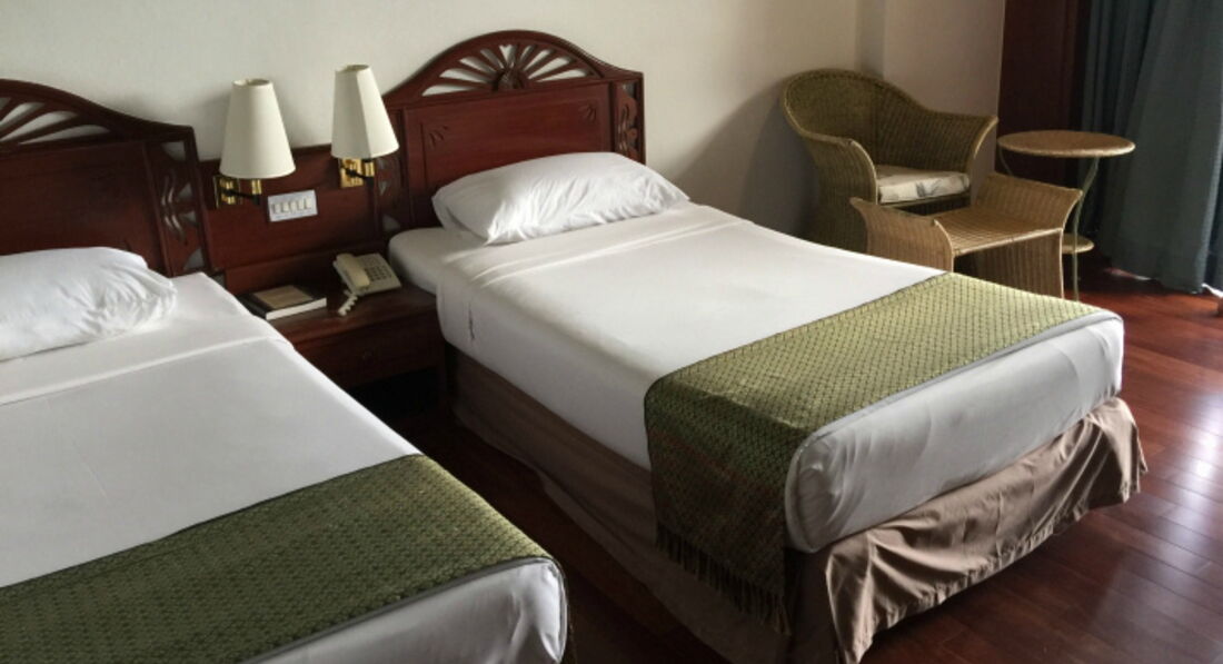 Номер нам дали очень потрепанный,все старенькое,начиная от мебели до сантехники. В душевой был грибок на стенах и шторе. Постель неудобная. вместо пододеяльника одеяло было завернуто в простынь! И это отель 4*! номера у нас выходили на водоем. Надеюсь все же,что не все номера такие,хотя кто знает... Не могли дождаться утра,когда же мы оттуда съедем.