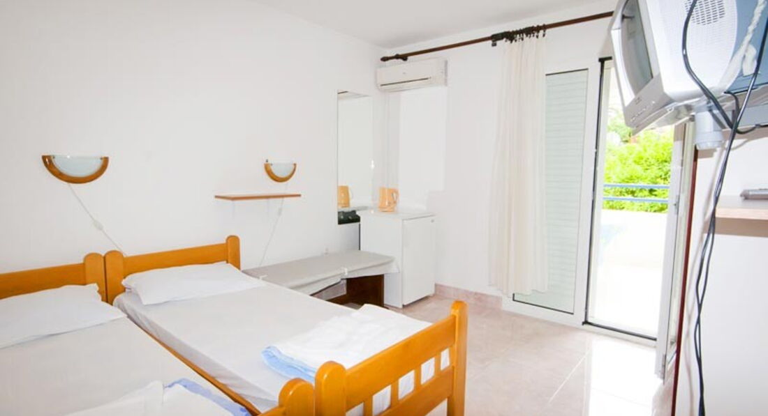 Готель складається з двох будівель: нижнього та верхнього будинків. У нижньому будинку — 6 двомісних та один тримісний номер, у верхньому – 7 двомісних та один тримісний номер. Номери з видом на море або гори.