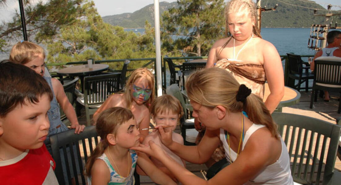 Для детей: небольшая дет площадка (была под нашим корпусом как раз), детское меню(на слабенькую 4ку), мини-диско, детский бассейн с маленькой горкой, детский мини-клуб, который мы долго искали. Работал 2 раза в день. До обеда - внутри помещения активности (рисование, аквагримм, и пр), после обеда - снаружи активности.