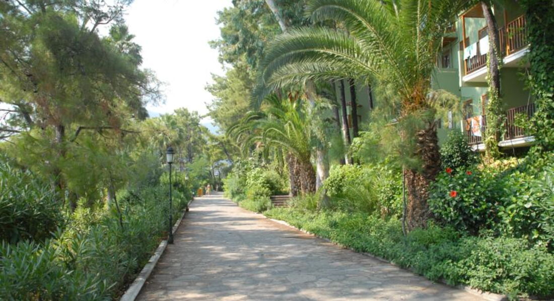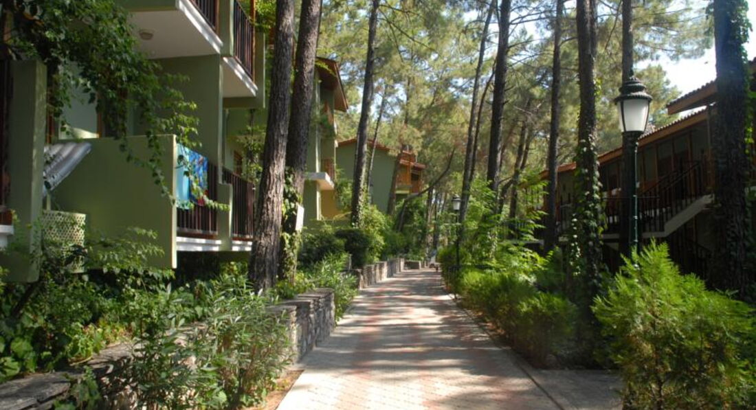 Готель з красивою зеленою територією. Збудований у вигляді традиційного турецького села – вузькі вулички та затишні бунгало у тіні сосен. Різноманітне харчування та привітний персонал. Рекомендуємо для сімейного відпочинку.