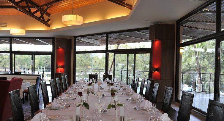 Бари та ресторани: головний ресторан розрахований на 800 осіб (критий, з кондиціонером, літня тераса, дитяче меню, дієтичне меню, дитячі стільці), лобі-бар (10:00-24:00), бар біля басейну (10:00- 01:00), бар на пляжі (11:00-21:30), диско-бар (23:00-02:00), Baharat-бар (19:00-21:30), Le Club-бар (14 :00-24:00). 4 ресторани A la Carte: далекосхідний, турецький, рибний, італійський - відвідування безкоштовно 1 раз на тиждень, за попередньою резервацією.