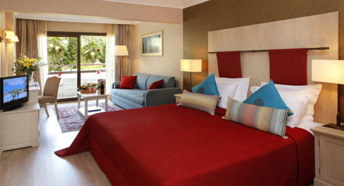 Тур наш проходил с 7 по 17 октября 2018 с ребенком 1.5 года, за 110тыщ.от библиков и а/к Россия. Приехали в отель в 7 утра. Это уже почти конец сезона, поэтому отель полупустой. Номер по туру у нас был deluxe land view, он же стандарт у др.операторов. На ресепшене сказали, что номеров нет, типа ждите до 14.00. Говорим мы тебе денег дадим, и о чудо, сразу нашелся номер 515, отдали 10$. Номер большой, две односпалки слитые воедино, потом идут ступеньки и диван раскладной и хороший балкон, вид был на дорогу отельной территории. Но так как с ребенком со ступеньками опасно, через 3 дня переселились бесплатно в более просторный и светлый номер 312 без ступенек ближе к ресепшену, вид был на горы и немного моря видно) Территория конечно суперская красивая, много бассейнов и зелени. Море тут же через променад, очень комфортно было в воде в этот период, вода кристально чистая, рыбки немного покусывают пятки, вода спокойная без волн, идеально для детей) Еда хорошая, вкусная, было из чего выбрать, хоть и конец сезона, но под конец все равно поднадоела. Один день в субботу был рыбный-раки, креветки, кальмары и т.д. с 12 до 5 работает барчик с бургерами, картохой фри и овощами, можно перекусить до обеда и далее. Есть спа и закрытый бассейн. Анимации не было, вечером играют на пианино и дудочке. Так посидеть под алко можно. Молодежи конечно будет скучновато, но можно пойти в Ичмелер и Мармарис где движуха. Брали велики с детским сиденьем по 200рублей один вел на три часа вышло. Хватает доехать по променаду вдоль моря до пирса мармариса с шикарными яхтами, там побродить и вернуться, всего 15 км туда-обратно. Брали еще электроскутер модель portero 8000 kuba (яндекс в помощь) за 600р в час, прикольная табуретка, едет примерно 30км/ч, заряда хвататет на 3 часа, права не нужны, можно ездить по променаду так и по дороге. Город Ичмелер красивый, можно погулять, не только в отеле находится, можно в Мармарис доехать за 3 лиры с человека на автобусе(остановка рядом с отелем), такси 40 лир, лодка такси 20 лир с человека (направо при выходе из отеля на променад). Забирать нас должны были из отеля в 18.40 поэтому продлили номер за 20$ с 12 часов, изначально просили 50€. Впринципе отель очень шикарный, за исключением еды, уборки номера. Отзыв естественно не купленый. На трипадвизоре полно плохих отзывов, не знаю кто их пишет, наверное конкуренты или зажравшиеся люди.