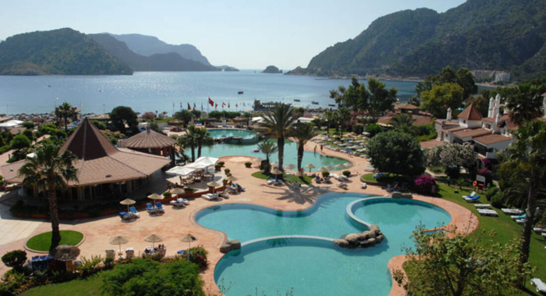 Выбор по питанию не плохой, но качество еды на на 5+, или ресторан не особо уютный. Чувствуется во всем какая то небрежность. В детском клубе аниматоры изрядно умотанные. Сама анимация тоже вроде и есть и нет. Но как мне сказали,это специфично для данного региона. Само место очень понравилось: и пляж и горы и зелень и расположение - хочешь в Мармарис едь на автобусе, хочешь по Ичмелеру гуляй - тоже хватает. Напитки в барах слабые очень. Вино как вода, пиво тоже. Из uall только Bellis. В общем мы видали и получше. Не стоит оно того. Отдых получился хорошим, но вот отель цена и качество не соответствует. Брали seaside вью. Лэнд вью наверное был бы вообще ад.