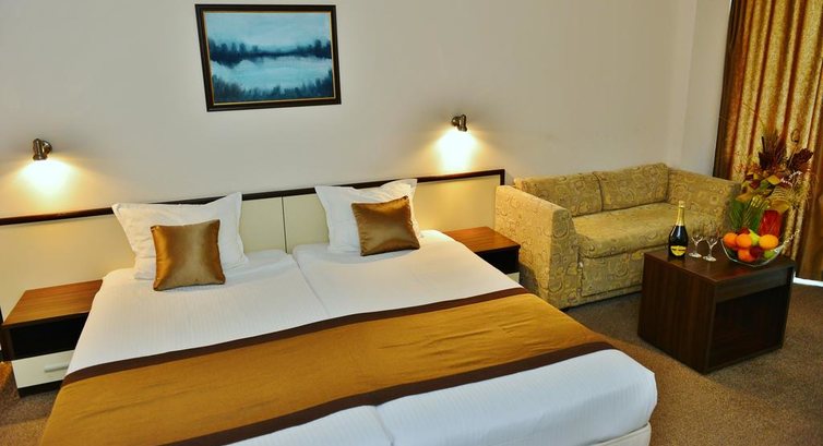 Проживали в тихом номере с видом на горы и соседние отели. Вид очень красивый. По вечерам из соседних отелей громко играла музыка, но т.к. когда мы были там ночи были прохладные, то мы закрывали двери на балкон и в принципе особо шум нам не мешал. Да и музыка к полуночи выключалась. Изредка слышно было проходящих по коридору людей, особенно в ночной тишине. В номере есть фен, холодильник, телевизор, кондиционер. Каналы по ТВ идут в основном на болгарском. Из русскоязычных каналов были «Первый», «Россия-планета», «НТВ», «ТВЦ» и канал с мультиками «Бумеранг». Из спортивных только «Евроспорт» на болгарском. Хотел найти Лигу Чемпионов - нашел один канал на болгарском, где показывали один только матч (игралось в это время 8).