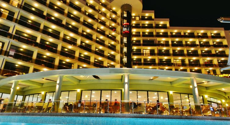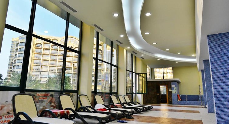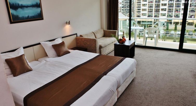Был удивлен этим отелем при сравнении с 4ми турецкими.Люблю Турцию,Средиземное море....и вот решил посмотреть на курорты Болгарии,проехали с другом на машине с Солнечного берега до мыса Калиакра на севере и до Китена на юге...Пляжи больше понравились те,где отдыхают местные,так называемые дикие...Меньше людей ,чище и прозрачнее вода,меньше медуз...На Слынчев Бряге море менее прозрачное,много медуз,плавать не комфортно...Кстати Хонда Джаз на 2дня стоила 50евро,по европейским меркам-не дорого...Есть смысл ознакомиться со страной поподробнее взяв машину на прокат-проблем нет ни на дорогах,ни с общением с Болгарами-друг друга понимали легко,особенно с людьми за 40...Но это предисловие.Подробнее об отеле-питание главный козырь-всегда все вкусно,поэлья из морепродуктов,рыбное филе,свиные ребрышки,люля-кебаб,жаренная ветчина,колбаски,мясо типа гуляш,курочка в разных видах...Все свежее,повара молодцы...Из фруктов -отборная черешня,спелые персики,абрикосы,нектарины,арбузы...Яблоки и апельсины как-то не хотелось...Из сладкого 2-3 блюда,супы 2вида,не протертые...Мороженое-3-4вида,овощи и зелень как и везде.Пицца -пальчики оближешь...И нет очередей ни в какое время,официанты чистенькие,работаю быстро и не заметно.Это главное отличие от турецких четверок,думаю питание даже ближе к хорошим 5кам Турции.Очень порадовало.Номера просторные,все работало исправно,на спутнике 5русскоязычных каналов,телевизор 32дюйма плазма...Вай фай то летает,то пропадает...Утром и ночью без проблем...Напитки вполне съедобные,местные,вставляют...Наливают до 23часов...В отеле вечером делать нечего,все гуляют по променаду,чем-то схоже с Мармарисом---магазины,кафешки,много Казино...Бассейн в отеле маленький,аниматоров трое,пытаются что-то изобразить...но это не Турция,там не сравнимо веселее интереснее...До пляжа 3минуты,лежак 4евро,зонтик также...В основном отдыхают украинцы ,белорусы,русские...европы чуть меньше-процентов 40 примерно...Все семьями,много детей...В июне цены дешевые,правда и море 22градуса,в июле цены поднимутся в полтора раза...Отель рекомендую...но если для людей на отдыхе главное море-то это конечно Греция,Турция да и Кипр с выходом на бассейны Средиземного моря...