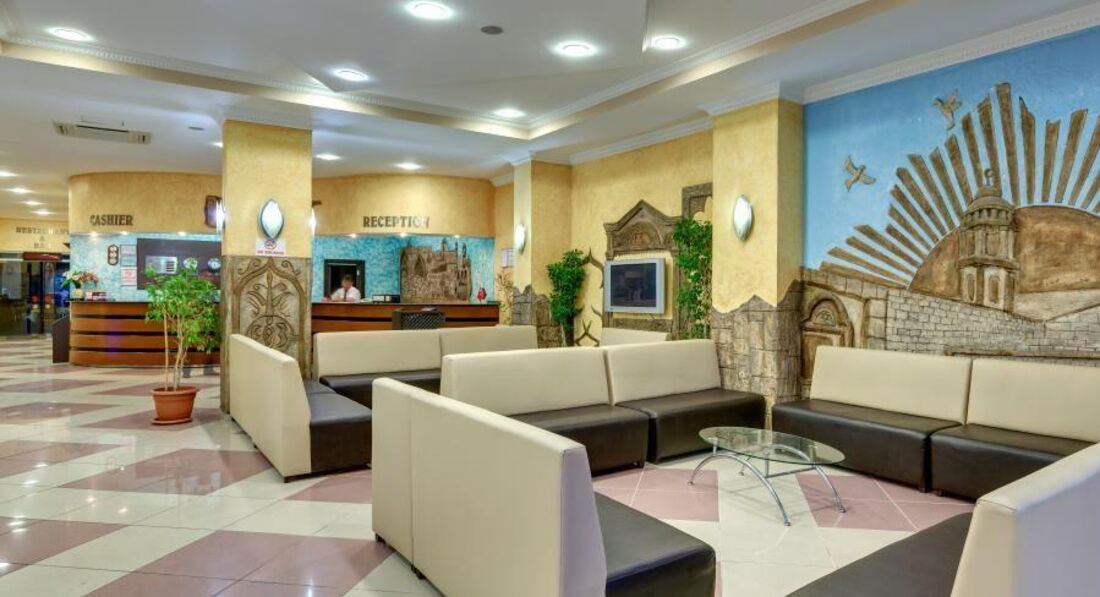 Если говорить честно, то отель был выбран нами случайно. Пока ждали регистрации на рейс прочитали последние отзывы об отеле и о... ли,хотели оставаться в Ростове чтобы не испортить себе отпуск окончательно, но приехав в отель были приятно удивлены. Персонал очень приветливый, нас сразу покормили и готовы были заселять. Если бы мы не встретили Анатолия!!! Спасибо Ему и всем ребятам из хамама. Профессионалы и мастера своего дела! Всём рекомендуем посетить там массаж!! Они были очень внимательные, без хамства и пошлости. Номер предложили на выбор, которым мы остались довольны. Было 5полотенец на двоих, чисто, фен, кондиционер, холодильник - все работало. А туалетной бумаги было (не поверете) 5!!!!рулонов)Сейф был, но зато доп.плату.Интернет только на лобби, но и он нам не понадобился, т. к. ехали отдыхать, а не сидеть в инсте. Еда была разнообразная и вкусная! Просто люди, которые отдыхали с нами, такое ощущение что они голодали, причём давно))) Оставляли горы еды на тарелках, от жадности что ли))) которую бедные официанты не успевали выбрасывать в мусорные баки.Алкоголь не элитный, но и путёвки не по 1000у.е.)))не будем забывать))) Официанты и бармены очень приветливы, не смотря на хамство, а иногда и "быдячество" наших))). Изюминка отеля - оказались брат и сестра из магазина "кожи и мех"-таких жизнерадостных и позитивных людей редко встретишь, мы на смеялись от души))) А ещё у них качественная продукция!