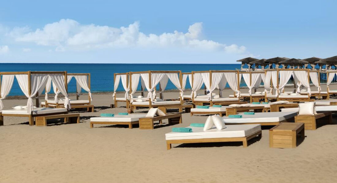 Пляж: власний, піщаний, довжина 300 м, пірс, кабінки для перевдягання, душ; пляжні рушники, парасольки, шезлонги на пляжі та біля басейну – безкоштовно.