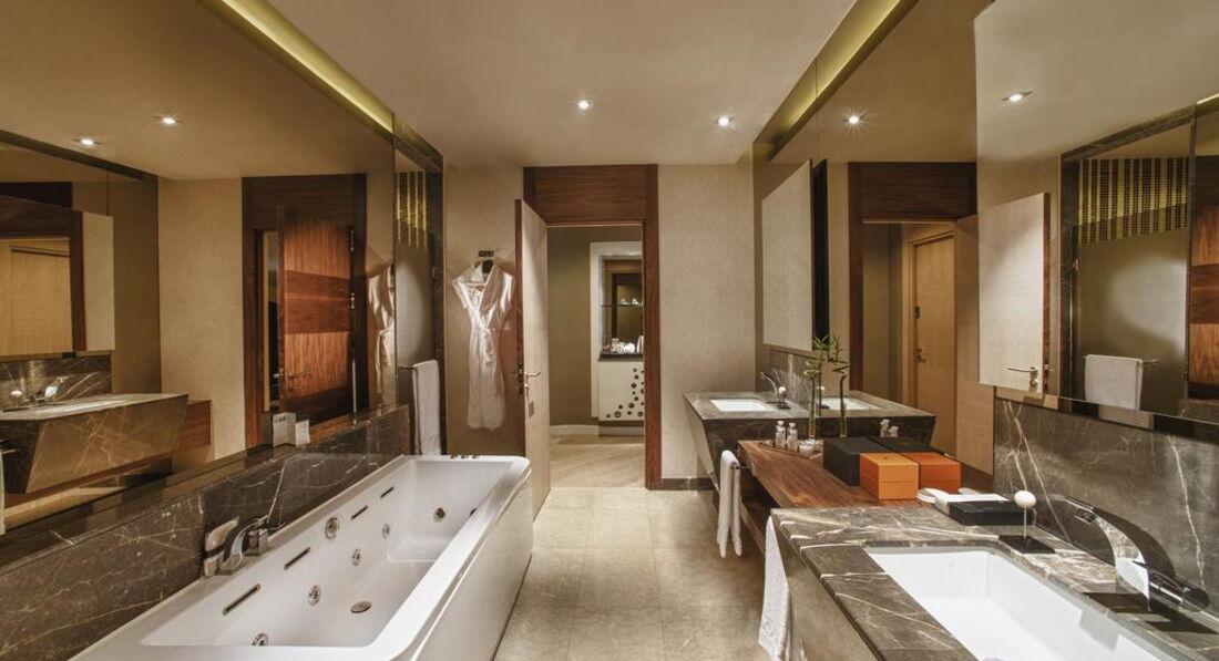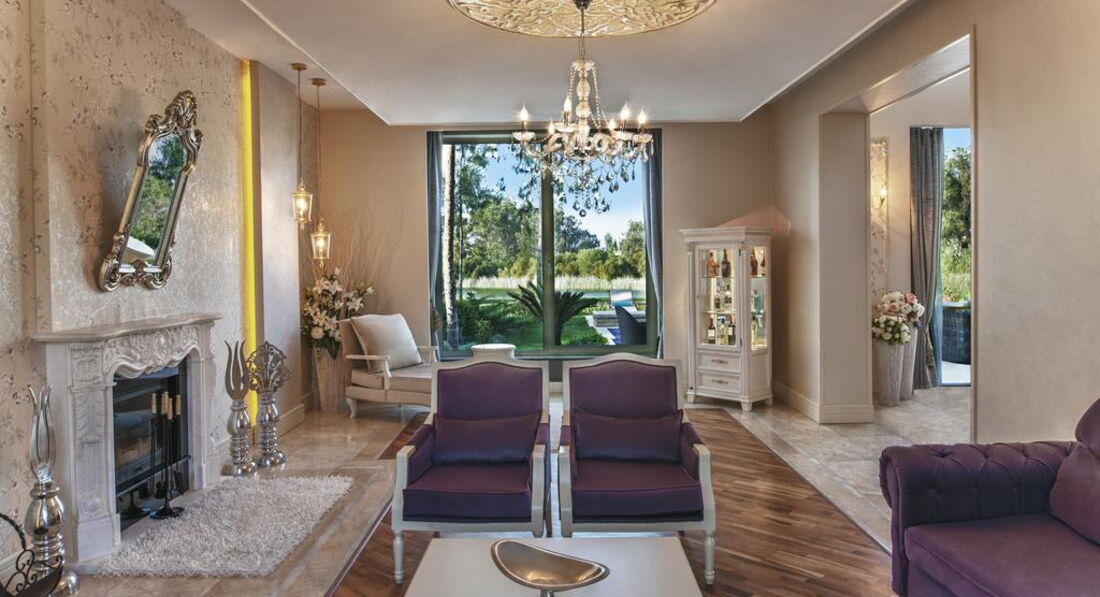 Presidential Villa (630 кв.м, макс. 9+1 інфант, 2 поверхи, приватний відкритий басейн, велика тераса, 4 спальні, вітальня, їдальня, кухня, 1 салон, 2 ванні кімнати з джакузі та душем, 1 ванна кімната з сауною і душем, 1 ванна кімната з хамамом, 2 ванні кімнати з душем, 5 туалетів, окрема кімната для прислуги з туалетом і душем, балкон);