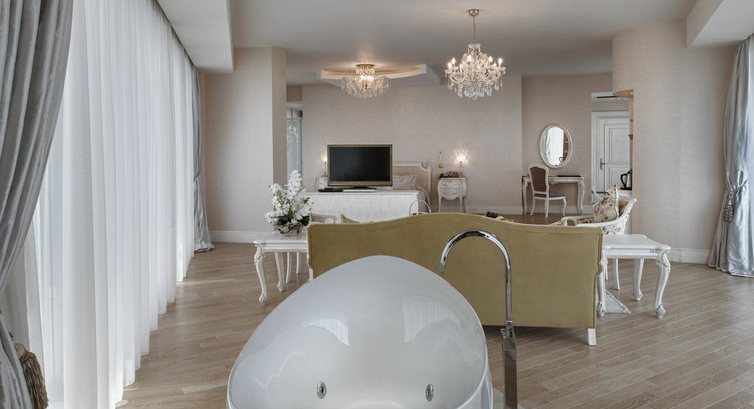 Suite Sea View (80 кв.м, макс. 3+1 інфант, спальня, ванна кімната з джакузі, душ, куточок для відпочинку, вбиральня, 15 кв.м балкон);