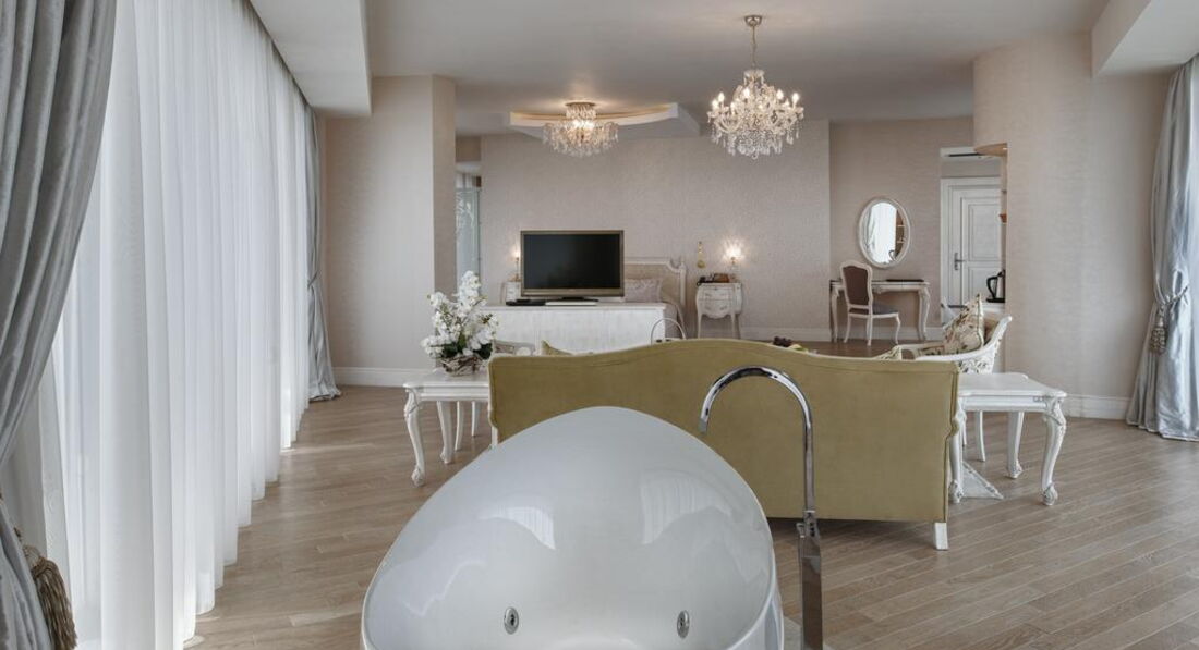 Royal Suite (170 кв.м, макс. 5+1 інфант, 2 спальні, куточок для відпочинку, 2 туалети, 2 ванні кімнати з джакузі, вбиральня, 30 кв.м балкон);