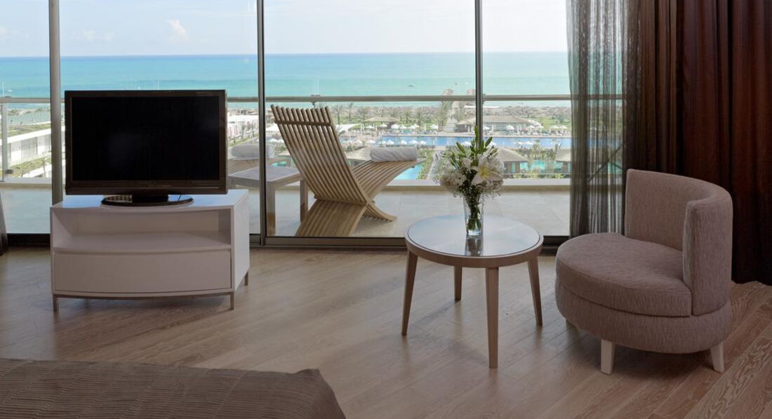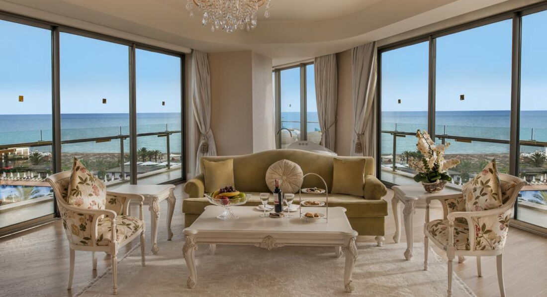 Family Suite Sea View (100 кв.м, макс. 4+1інфант, 2 спальні, куточок для відпочинку, 2 туалети, 1 душова, 1 ванна з джакузі, вбиральня, 20 кв.м балкон);