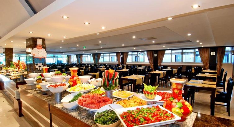 Бари та ресторани: головний ресторан розрахований на 500 осіб (критий, з кондиціонером, літня тераса, дитячі стільці), лобі-бар (10:00-23:30), бар біля басейну (10:00-23:30), бар на пляжі (10:00–17:00), диско-бар (23:00–02:00).