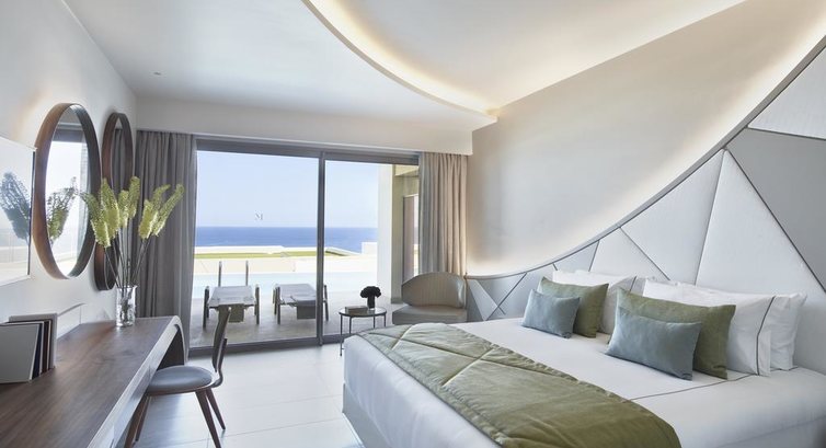 • Mayia Suite with Private Pool Sea View номери площею 48 кв.м., обладнані 1 двоспальним або 2 односпальними ліжками