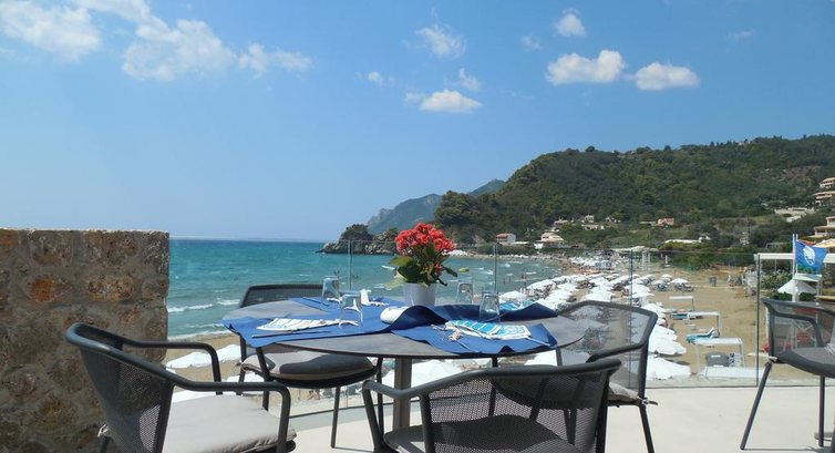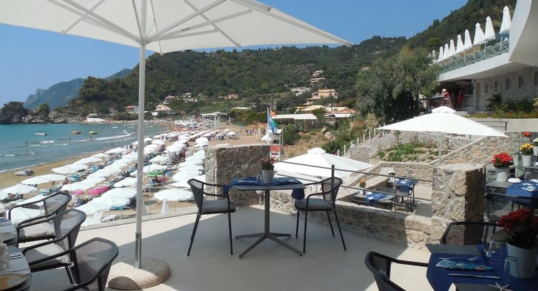 Наверное один из самых приятных отелей западного побережья Корфу. Расположен в потрясающе красивом месте. Наверное для того,что бы гости ежедневно испытывали эстетический шок, глядя на самые красивые закаты над морем. Само здание отеля построено каскадом на склоне горы, построено так, что все террассы номеров имеют вид на море, за исключением не большого кол-ва номеров , как правило это синглы и семейные номера, которые расположены с сидом на сад. Территория у самого отеля небольшая, они фактически и составляет само здание отеля, здание основного ресторана и непосредственно бассейн на смотровой площадке, откуда открываются совершенно потрясающий вид на море. Архитектура здания ресепшн тоже по своему оригинальна, отделана под старину, поэтому когда входиш в отель создается впечатление путешествия во времени. Перемещаться по склону горы также не утомительно, так как вдоль склона "ползает" очень симпатичный стеклянный лифт - фуникулер, который позволяет с лихвой оглядеть октесности. Номера в отеле имеют большую площадь, обставлены со вкусом, новой мебелью из цельного дерева . В номере телевизор, фен, ванна, туалет, биде. Сейф можно арендовать на ресепшене, ровно как и заказать в номер минибар (за доп. плату). В отеле так же имеются два бара - бар - террасса ( очень оригинально оформлен) и лобби-бар. "Воздушный" дизайн отеля завершает террасса с бассейном. Бассейн не большой и весьма, но очень чистый с водопадом. Вокруг бассейна лежаки бесплатно. С террасы спуск на муниципальный пляж. Лежаки, матрасы и зонтики на пляже платные. Пляж очень чистый. Вдоль пляжа множество различных таверн. В конце пляжа с конца мая по конец сентября ходит бесплатный шатл-бас в дерекню Pelecas, откуда можно рейсовым автобусом на 1 евро добраться до столицы острова. Отель так же предлагает трансфер в Керкиру ( стоимость туда и обратно 10 евро).