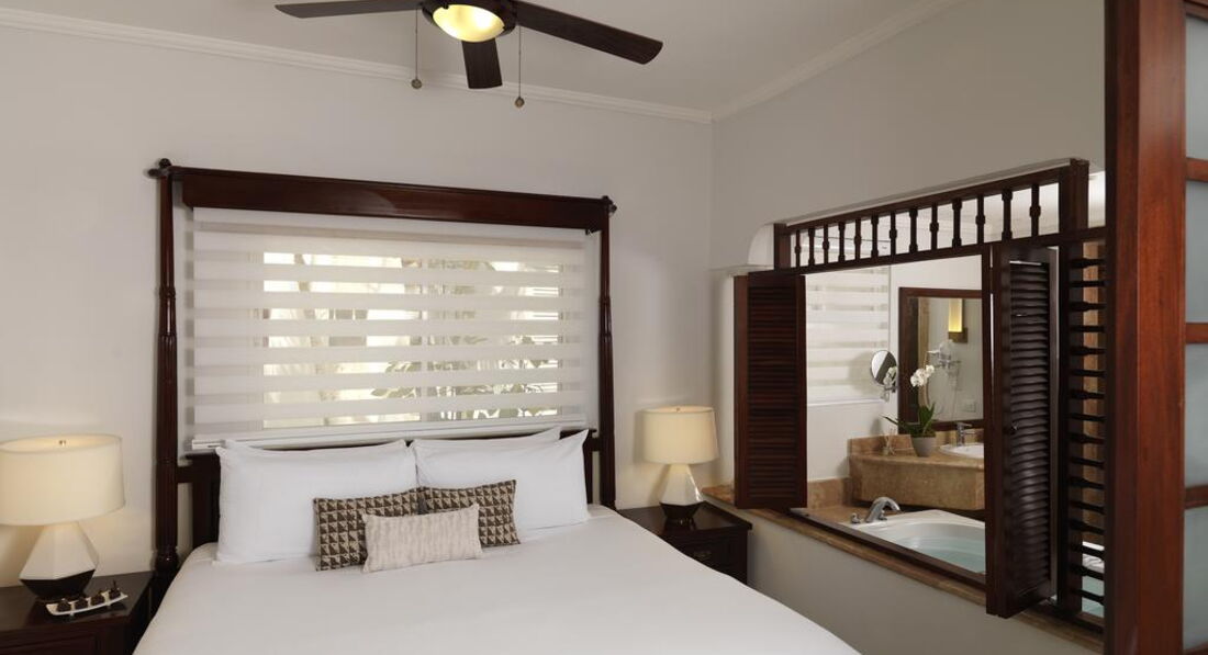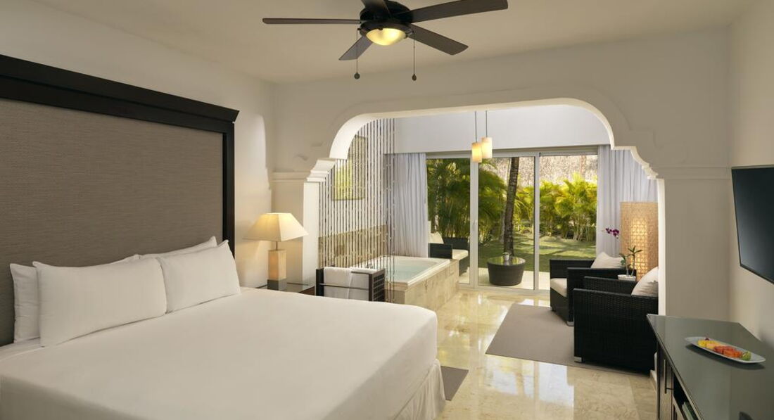 • Premium room with whirpool beach side (42 кв.м., номери з видом на пляж) - спальня з ліжком king size, патіо з балійським ліжком