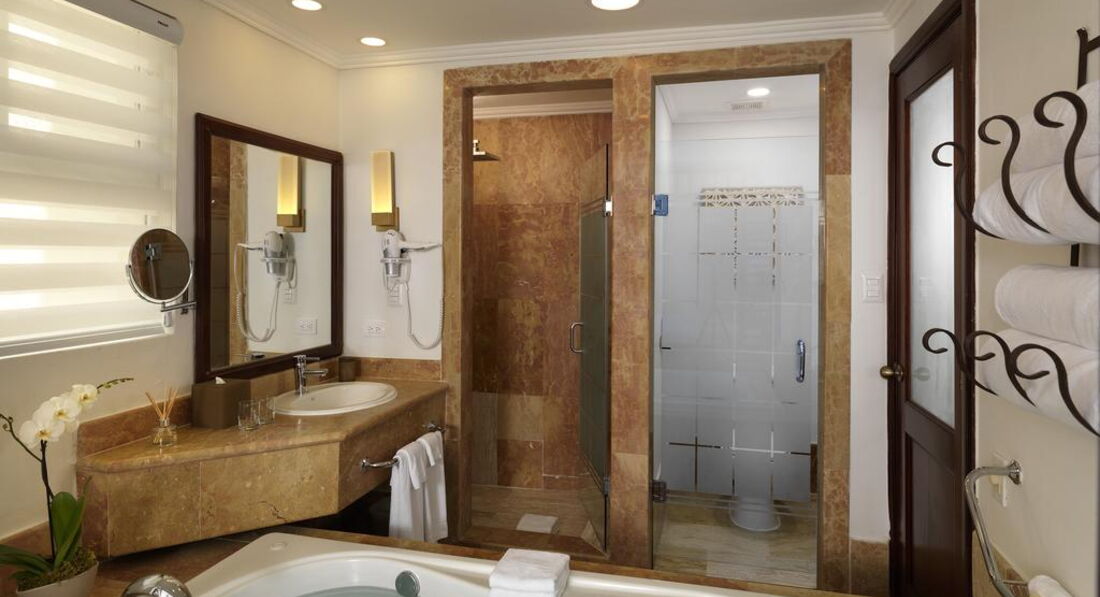 • The Level Junior Suite (48 кв.м.) – спальня з ліжком king size, вітальня, відокремлена від спальні розсувними дверима, джакузі, балкон або тераса з видом на сад чи басейн