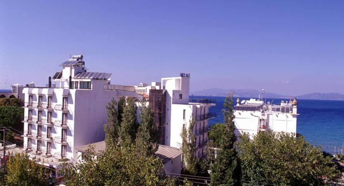 Сразу признаюсь,что ехал в Кушадасы исключительно из-за близости оных к древнему городу Эфесу.По-этому для недели отдыха и путешествий был выбран непритязательный и соответственно недорогой отель.Мой выбор пал на Melike,тем паче,что на других туристических интернет ресурсах этот отель усиленно хвалили.Из аэропорта Измира нас 5 человек привезли в отель одними из первых ранним утром.Оставил сумку на recepcion и пошёл позавтракать,заодно взял фотокамеру.Рядом нашёл ресторанчик где "английский завтрак" был представлен за 12 турецких лир: а это огромный омлет,тосты,ветчина,красные бобы,помидоры,огурцы как гарнир и огромная кружка капучино.Где то на круг 6 долларов.По меркам того времени (сентябрь 2014) не дороже 180 рублей-обжираловка однозначно.Вернулся в отель около 10 утра-номер уже был готов.Номер дали на 3-ем этаже в полу-видом на море (есть на фото).Чистенько.Но нет холодильника.Попросил.Принесли дня через два-не работал.Я скандалить не стал и пиво приходилось выпивать в номере пока не остыло (ха-ха).Поездку в Эфес купил у местных операторов,получилась в разы дешевле.Попутно и как бонус возили в разные места,мечети,фабрики керамики с процессом показа превращения глины в готовый продукт,кормили "на убой".Можно конечно поехать в Эфес и своим ходом,на местной маршрутке-долмуше,но я выяснил,что организованно за 40$ на целый день(!) гораздо удобнее.Тебя везде возят,показывают и...напрягаться лишний раз не нужно.Есть ещё разные поездки по историческим местам.Есть Помуккале и прочие достопримечательности.Можно так же отправиться на морскую прогулку с купанием и обедом на борту.Выбор достаточно большой.Можно поехать в Измир,большой близлежащий город.Но это отдельная тема-тема экскурсий.Ещё по отелю.Сам отель Melike состоит из двух 5-ти этажных корпусов,соединенных между собой (внимание!) на уровне крыши специальными пешеходными мостками.Признаться я такого раньше нигде не видел.Там же на крыше одного их корпусов находится столовая-ресторан.У меня были одни завтраки.И я вам признаюсь честно,кушать с утра под пение птиц и великолепным видом на море и окрестности с высоты-одно удовольствие.Правда,как потом я выяснил,многие отели в Кушадасах именно на крышах располагают свои места по приёму пищи.Очень экзотично и крайне привлекательно-рекомендую.Сами завтраки довольно банальны.Но всегда были фрукты (был сентябрь-месяц) Арбуз или дыня.Сам отель расположен рядом остановкой общественного транспорта-долмуш,как наша маршрутка (как собственно везде в Турции) стоимость проезда до центра города 2,5 турецких лиры.Ехать по холмам и склонам (а Кушадасы стоит на горной гряде у моря) минут 10-12 по красивой дороге.Выходить рекомендую у местного Караван-сарая.Здесь начинается пешеходная зона,где сосредоточены магазины,кафе,рестораны,рынок и все прелести туристического рая.Но нужно помнить,что в Кушадасы большой порт,куда приходят ежедневно большие круизные лайнеры,из которых высыпают на пирс огромные толпы туристов,путешествующих по странам Средиземного моря и даже заходят корабли из Атлантики.Вот под них и "заточены" большинство цен в местных торговых точках.Рядом с отелем (нужно пройти зигзагом метров 250) находится известный в городе общественный пляж-Дамский.Или как его здесь называют Ladies Beach.Скажу сразу пляж не очень протяженный,метров 500 не более.Лежаки и зон