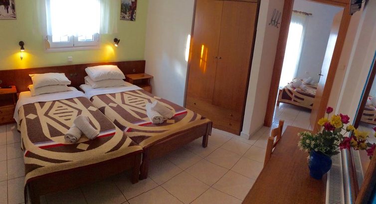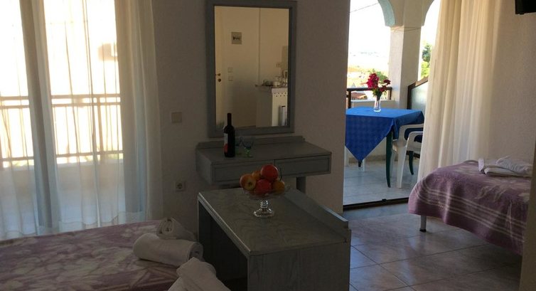 Ресторан та фасад будівлі оновлено ва 2010. Косметичний ремонт у 2013 р. 5 триповерхових будівель. Чотири будівлі та ресторан розташовані поряд з басейном, 5-та будівля Αnnex розташована трохи далі (400 м) на височині. Всього 63 номери: Doubles Upper Floor (~24-29 кв.м), Doubles Partial SV (~25-30 кв.м), Economy Rooms Annex (~28 кв.м), Family Rooms Ground Floor (~30-35 кв.м), Family Superior (~35-45 кв.м), Suites Deluxe Upper Floor (~70 кв.м). Типи номерів: Double Upper Floor Розташовані в одній із центральних будівель, балкон. Double Partial SV Розташовані в одній із центральних будівель, балкон. Economy Room Annex За 400 м від центральної будівлі з басейном і рестораном (5 хв. ходьби), балкон. Family Room Ground Floor Центральна будівля. Двокімнатні квартири на першому поверсі (ground floor). Прохідна спальня та окрема спальня (з дверима) - 2 двоспальні ліжка або двоспальне та 2 односпальні, тераса. Family Superior Центральна будівля. Прохідна спальня та окрема спальня (з дверима) - 4 односпальні ліжка та диван, балкон або тераса. Suite Deluxe Upper Floor Центральна будівля. Спальня з великим двоспальним ліжком, вітальня з 3-ма диван-ліжками, камін, обідній стіл, кухня, балкон з видом на басейн, 2 телевізори, 2 кондиціонери. У ванній кімнаті є ванна з гідромасажем. Вітальний напій. Тип додаткового ліжка – диван-ліжко/стандартне.У номері: Балкон/тераса Душ Кондиціонер Російський канал Супутникове ТВ ТБ Телефон Фен Холодильник