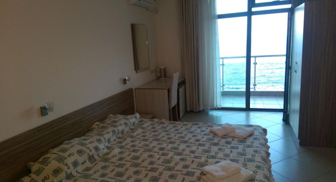 Отель современный чистенький новый..весь блестит..номер был с видом на море, окна на балкончик почти во всю стену...закаты, восходы, лунная дорожка по всему морю как буд-то к нам в постель ,звёзды. .шум прибоя..чайки..в общем всё как мы и хотели. Хотелось бы отметить тишину поскольку отель как бы в тупичке находится и там всегда тихо.