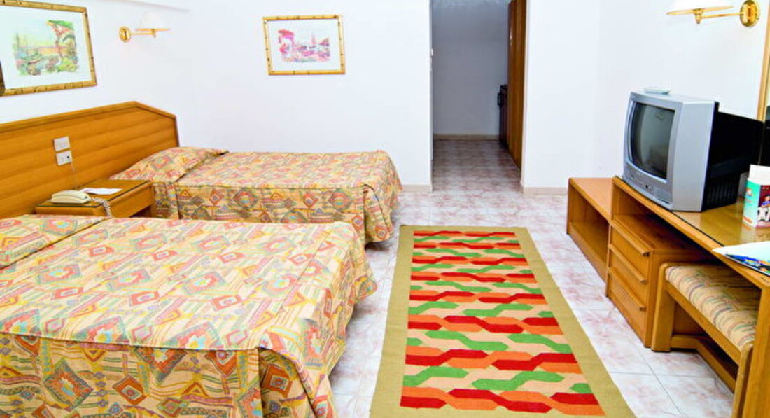 Мы поселились в стандартном двухместном номере с балконом и видом на море. Для дочери попросили дополнительное спальное место, номер был достаточно просторный, поэтому месту всем хватило. Номер приличный, есть кондиционер, телевизор, шкаф, чайник, холодильник, ванная комната с туалетными принадлежностями и феном.