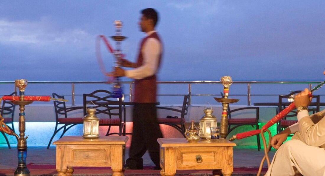 3. Территория: Очень красивая, с видом на весь город с горы, большой бассейн с подогревом и джакузи, второй бассейн с 3 горками водными, пляжные полотенца и шезлонги есть, так же бесплатно сауна сухого и мокрого пара, массаж за доп. плату 120 дирхам пол часа ( около 33$). Есть смотровая площадка с биноклями, красивый ресепшн.