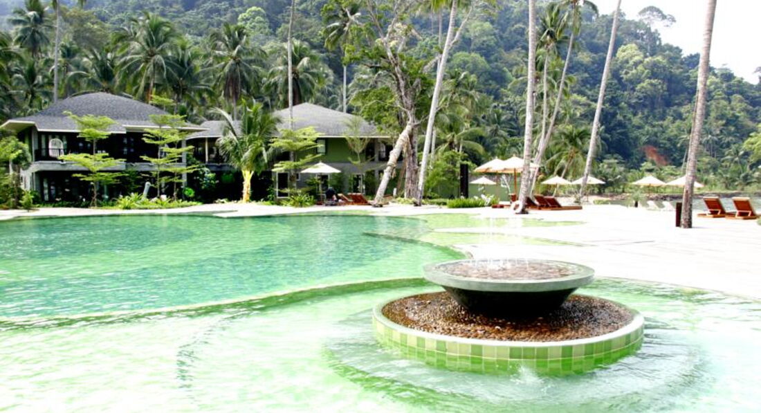 Замечательный, очень тихий, уединенный отель. Находится на краю острова Ко чанг, вдали от шума и суеты. Жили в номере Garden view delux, в двухэтажном корпусе с видом на бассейн и джунгли. Номер большой, с высокими потолками, большими окнами, очень светлый и стильный. В номере имелись тапочки, халаты, двд проигрыватель, полный комплект помывочных средств, шлепки для пляжа, чайник, кофе, чай... На территории отеля два бассейна, один более уединенный, второй находится возле пляжа, посему всегда полон народа, купание разрешено до 19.00. На пляже имеются 4 ванные-джакузи. Территория очень зеленая, много экзотических тайских цветов. Обслуживание великолепное, уборка в номерах ежедневно, но когда они это делают, вы и не заметите, обслуживающего персонала почти не видно. Возле отеля есть магазины и кафе, но мы брали мотоцикл и ездили по всему острову. До близжайшей деревни с развлекаловкой примерно 20 минут. Минусы: Тяжеловато придется тем, кто вообще не говорит по-английски; не очень понравился пляж, очень каменистое дно, во время отлива в воду больно заходить; Завтраки вкусные, но однообразные.