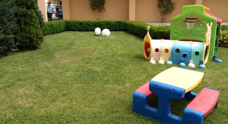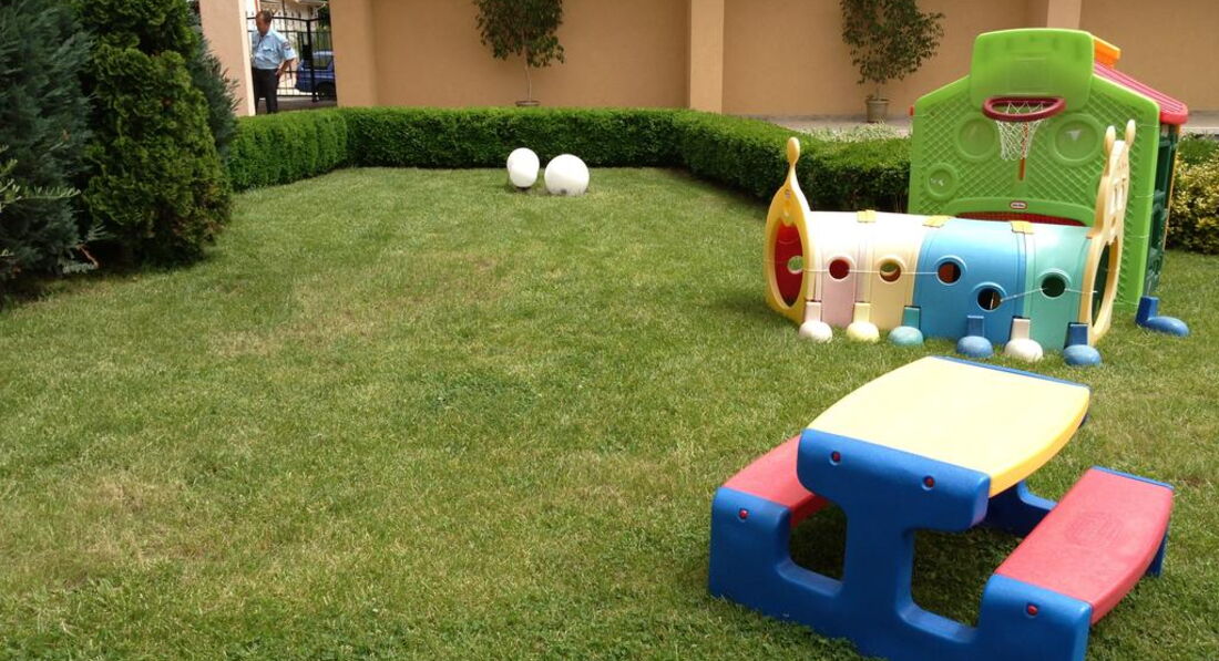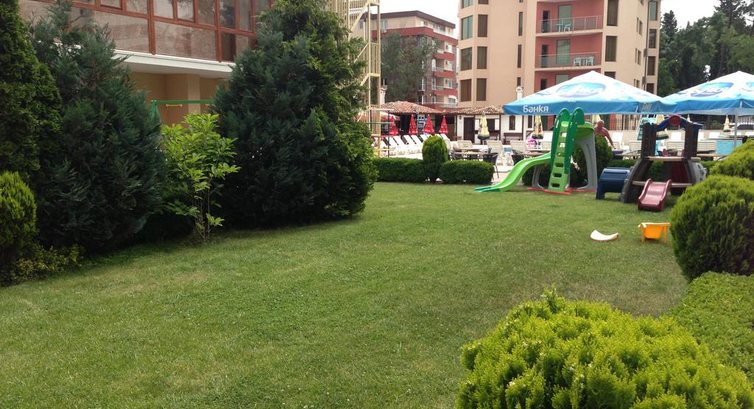 Из плюсов пожалуй назову только хорошее расположение отеля, по-дальше от суеты Солнечного берега, но при этом пешая доступность до центра города и центра ночной жизни, до пляжа 7 минут спокойным шагом, есть территория с бассейном и детская площадка на зеленом газончике.