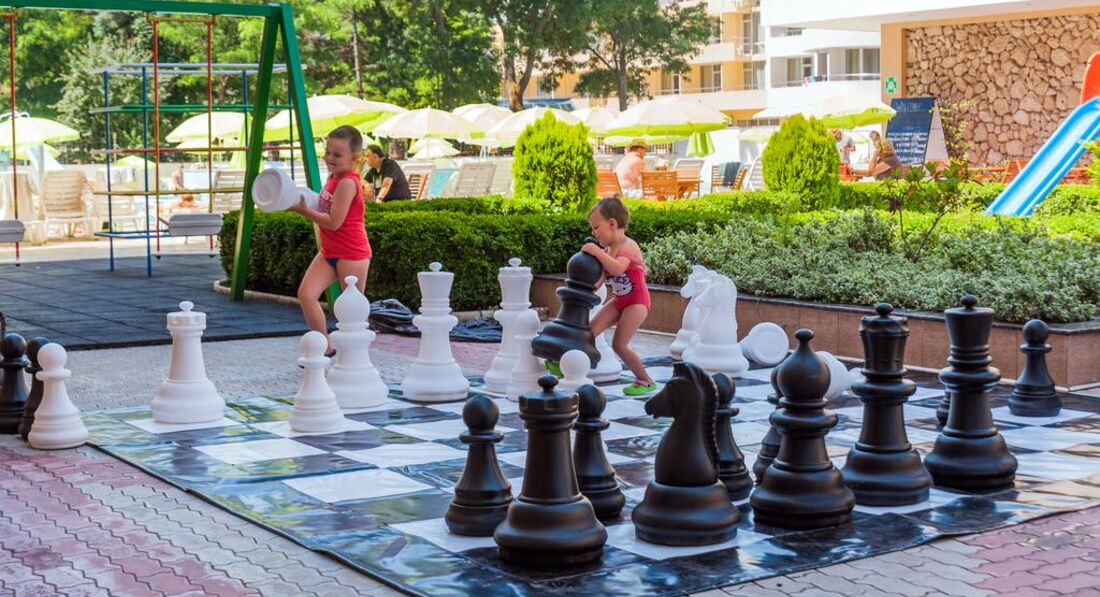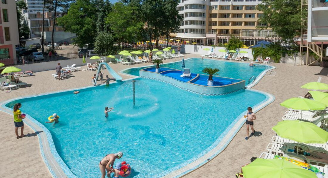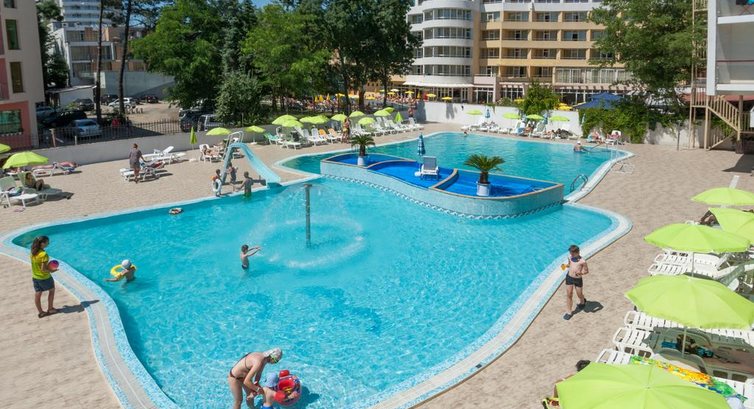 Отдыхали в отеле с 05.06-15.06. По системе AL. Два взрослых и ребенок 4 года.Рейс был вечерний, в отель прибыли поздно, поэтому проблем с расселением не было. Но слышали, как вновь прибывшие утром, ругались у стойки регистрации, так как расселение с двух часов, хотя и отдыхающих в это время не много. По приходу в номер нас ждал ужин, ( т. к. на него мы не успели из-за задержки рейса) который состоял из сырной нарезки, овощей, булочек, джема и воды. Для того, чтобы перекусить с дороги -не плохо. Номер просторный, у нас был первый этаж жилой ( по этажности он второй,т.к. первый это рецепшен), в номере пахло сыростью. Заселились в кромешной тьме, поэтому когда утром вышли на балкон, то картина была грустной- обзор упирался в заднюю стенку стоящего напротив здания(казино). Менять не стали, чтоб уличного шума было не много, но шума там хватало от наглых чаек, которые постоянно орали, купались в бассейне и воровали еду... Территория не большая, но в целом хорошо. И для деток есть игровая зона и для родителей. Бассейн взрослый и детский с горкой. Расположение у отеля хорошее, хотя когда нас высадили из автобуса мы немного напряглись, так как до центрального входа не довозят из- за неудобной парковки. Находится в центре Солнечного Берега. До моря близко. Мы ходили по маршруту: с центрального входа налево до торгового центра БАРСЕЛО ( в двадцати метрах) на перекрестке налево и до пляжа. А с другого входа в отель, который через спортзал, выходите на автобусные остановки, где можно самим добраться до ближних городов мы ездили в Несебр старый город( остановка через дорогу) и Св. Влас (остановка на вашей стороне) смотрите расписание маршрутов на остановке. Проезд стоит1.30 лев и 1.50 лев. Центральная улица для прогулок рядом. У самого отеля магазинчик- цены приемлемые. Относительно других супермаркетов. В 30 мин. ходьбы находится аквапарк, но нам попасть не удалось, подвела погода, напротив него большой торговый центр. Питание в отеле хорошее, выбор не огромный, но разнообразие присутствует. Еда вкусная, приближена кухня к нашей. Вот уборка ресторана не понравилась. Со стола просто смахивают крошки, а индивидуальный коврик для приема пищи просто переворачивают . Столы бывают липкие, тарелки попадались грязные. Но если на это заострить внимание управляющего, то тут же персонал начинает шевелиться. В номере уборка была через день, два. Но тоже непонятно, то кровати не заправят, то белье старое оставят на полу, грязные стаканы вообще до самого отъезда не убрали... Валюта местная- левы. Менять можно в банке и в обменниках евро и рубли без проблем. Кстати самый выгодный курс обмена евро на левы был в магазинчике рядом с отелем ! Самый большой минус на мой взгляд- это грязное море: цветущая зелень, непонятные щепки, набирали в стаканчик воды, там плавали какие- то жуки, хотя так их не видно. Как то не очень приятно. Пляжи городские, но лежаки и зонтики платно по 10 лев каждый- это примерно по 400р. на наши деньги, но вы можете без проблем приходить со своим атрибутом... Вообщем в целом впечатление хорошее.