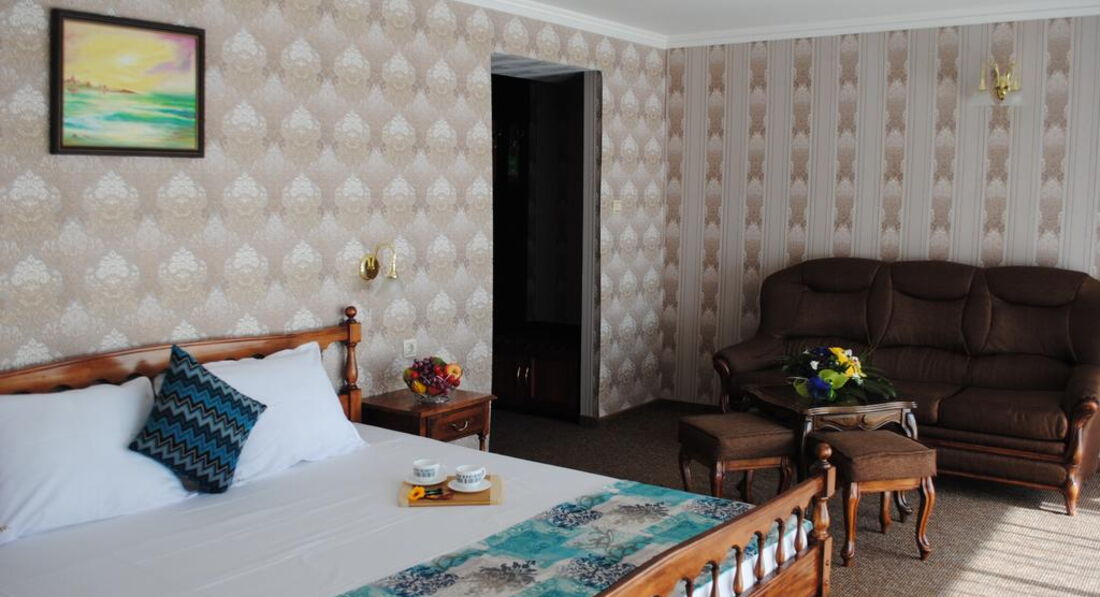 Отдыхали мы семьей (2-е взрослых и 2-детей) в начале июня 2015 года. Разместили быстро. Номер большой, светлый, удобный в нем большая кровать и разложен диван. Все бы ничего но спать на диване было ужасно неудобно, он во первых скрипел, а во вторых был поломан , все пружины были в твоем теле- это очень не удобно. Сан узел большой, чистый но не хватало шторки- вся вода была на полу. Питание хорошее, разнообразное и вкусное мы приобретали только фрукты.
