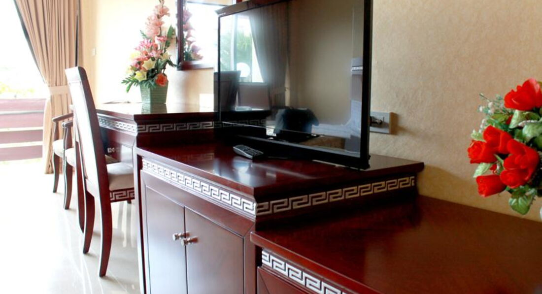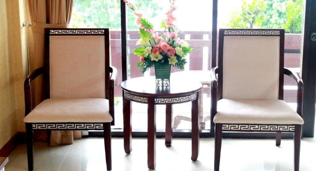 Приехали поздно, по заселению все в порядке, разместили в номере на втором этаже с видом на бассейн и внутренний двор, взяли депозит 1000 бат.Есть корпус с видом на улицу, не хотела в него попасть.Сам номер кажется нормальным, небольшая комната, но маленькая ванная . В номере мебель, в хорошем состоянии, шкаф с сейфом, чайный набор с чайником,кровать, столик со стульями,телевизор, но......с потолка осыпается штукатурка, пожухлые странные обои на стенах, низкие потолки, грязные окна и засаленные шторы, перекошенный маленький балкон, тоже не очень чистый, и тоже с осыпающейся штукатуркой.В ванной стойкий запах канализации, ржавый душ на сломанном держателе.Жаль, конечно, что фото не передают, насколько все в отеле старое и грязное, требуется ну ооочень капитальный ремонт. Самое страшное для меня матрас на кровати-это тупо пружины обтянутые тоненькой тканью, спать невозможно, проснулась ночью от того, что занемело все тело и если рядом с вами спящий человек начинает поворачивается, вы ,подпрыгивая, поворачиваетесь вместе с ним.Утром перед встречей с гидом подошла на рецепшен с просьбой поменять номер, персонал был очень удивлен узнав номер комнаты, спросили- а вам не нравится??? Я поняла, что поменяв комнату ничего не изменится.Зашла в неколько номеров рядом во время убоки и поняла, что не ошиблась.Позже гид на мой вопрос "почему отель с таким хорошим рейтингом настолько никакой?" ответил "что вы хотите, отель очень старый"