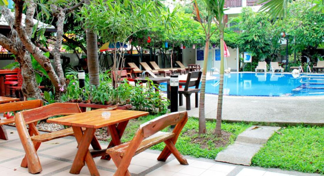 Отдыхали с мужем, в марте 2014 года. Это была первая поездка в Тай. При выборе отеля критериев было минимум, тк постоянно в номере находиться не планировали ( так и вышло, большую часть отпуска провели в экскурсиях ). В отеле только ночевали и завтракали, кстати завтраки хорошие, ассортимент не большой, но все вкусно. Мест всегда хватало. Обычно мы всегда выбирали столики у бассейна. Очень удачное расположение бассейна внутри двора в тени кустарников и прочей зелени. Для примера в одном из соседних отелей бассейн расположен прямо у входа, люди отдыхают, расслабляются, а мимо проходят толпы заселяющихся зевак, думаю не очень уютно. В номере убирались. Персонал вежлив, но не тороплив.Воровства не было