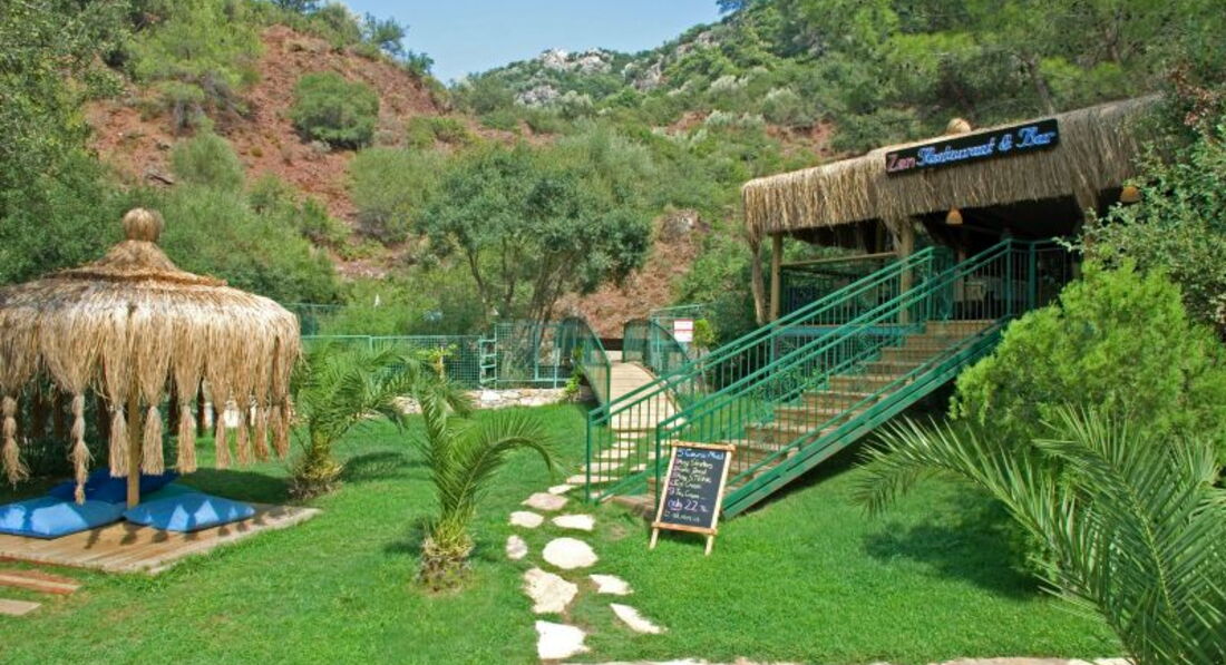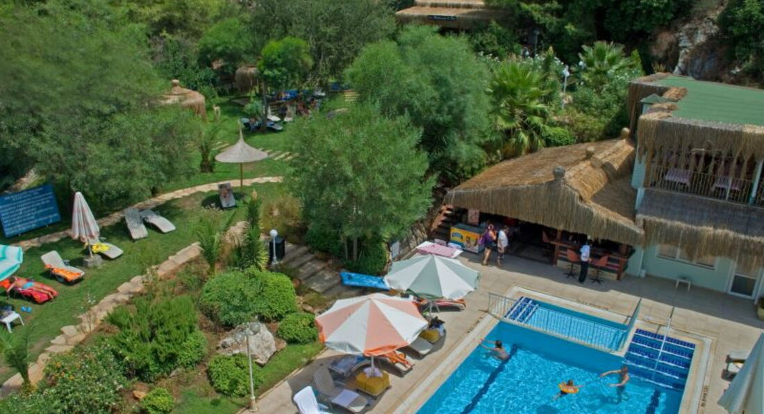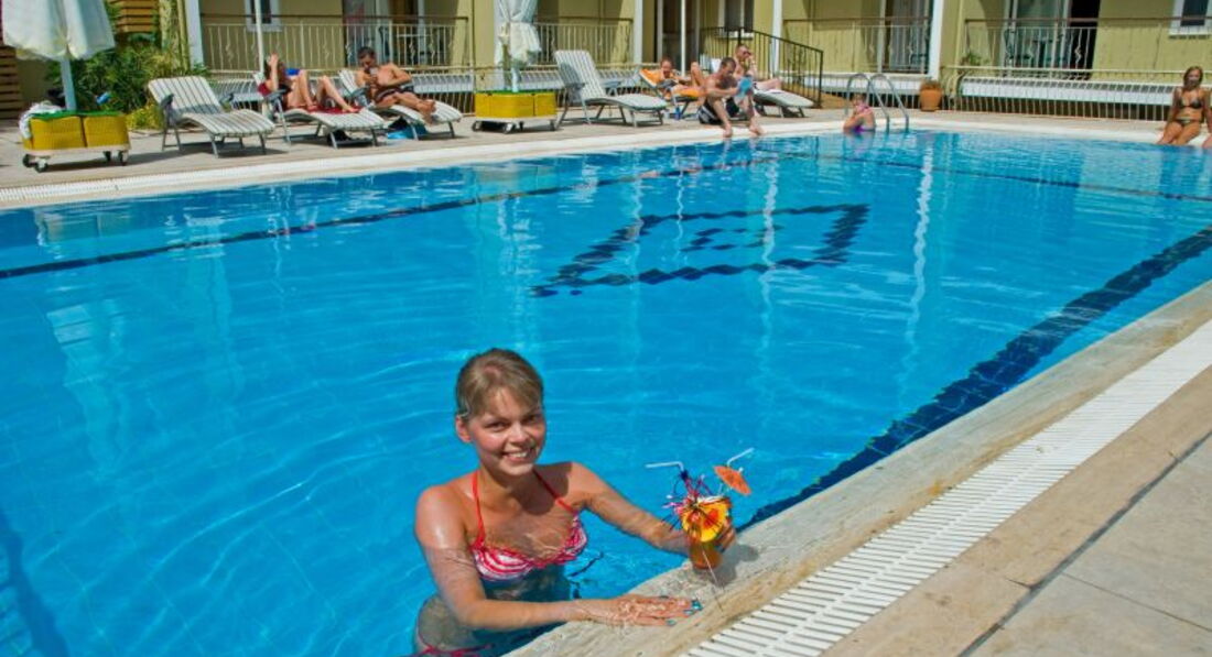 Отдыхала в этом чудо-отеле в конце августа 2011 г. Первый минус: отель стоит в удалении от основной дороги поселка Ичмелер, поэтому большие автобусы, везущие туристов из аэропорта к нему просто не подъезжают (негде разворачиваться). Соответственно, чемоданы туда мы волокли сами в гору. Первый плюс: на ресепшене русскоговорящая девушка Юля. Она-то и повела нас селиться в ... подвал без окон. Я, когда увидела эти "аппартаменты", схватила сумки, притащила их на ресепшн, села на них и же и сказала, что уйду отсюда только в приличный номер. Нам пытались объяснить, что других номеров нет, пока я демонстративно не начала звонить представителю туроператора и ругаться с ним. В итоге нас поселили на 3 этаже с видом на гору, достаточно живописную. В общем номер тянул только на 3, полотенца серого цвета, душ со шторочкой, гель для душа не предусмотрен. Питание: достаточно вкусно, но ассортимент - никакой, особенно страдали десерты. Удручала и обстановка в столовой на открытом воздухе (рестораном сие заведение язык не поворачивается назвать). Скатерти грязные, посуда недомытая. Обстановку скрашивал только вечно улыбающийся бармен. А еще по вечерам павлином ходящий между столиков хозяин (как он себя называл). Он зазывно улыбался всем симпатичным дамам и обещала выполнить все капризы отдыхающих, при этом когда ему начинали жаловаться на что-то, делал вид, что не понимает. У отеля свои лежаки на общем городском пляже, плата - ,5 лиры в день с человека. лучшие места у воды вечно бронировались для немцев и англичан. Чтобы улечься поближе к морю приходилось скандалить с смотрителем пляжа. Море просто чудесное: чистое, теплое, всегда спокоеное. Вообще природа Мармариса просто сказочная. Только за это и можно простить отелю все минусы.