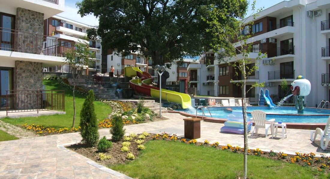 Затишний комфортабельний апартотель, розташований на березі моря, на межі курортів Св. Влас та Єленіте, пропонує своїм гостям розміщення у просторих апартаментах, відкритий басейн, водну гірку для дітей та безкоштовний wi-fi.