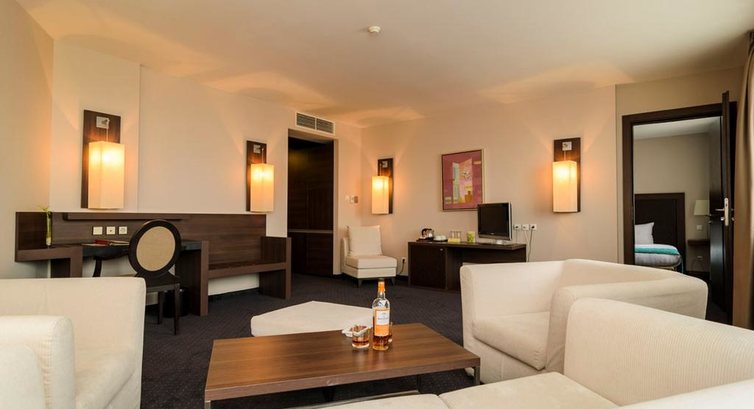 • Junior Suite (спальня з одним двоспальним ліжком 180х210 см, вітальня з нерозкладним диваном, суміжні двері, додаткові місця – розкладні ліжка, 2 ванні кімнати, макс. 4 чол., 60 м2)