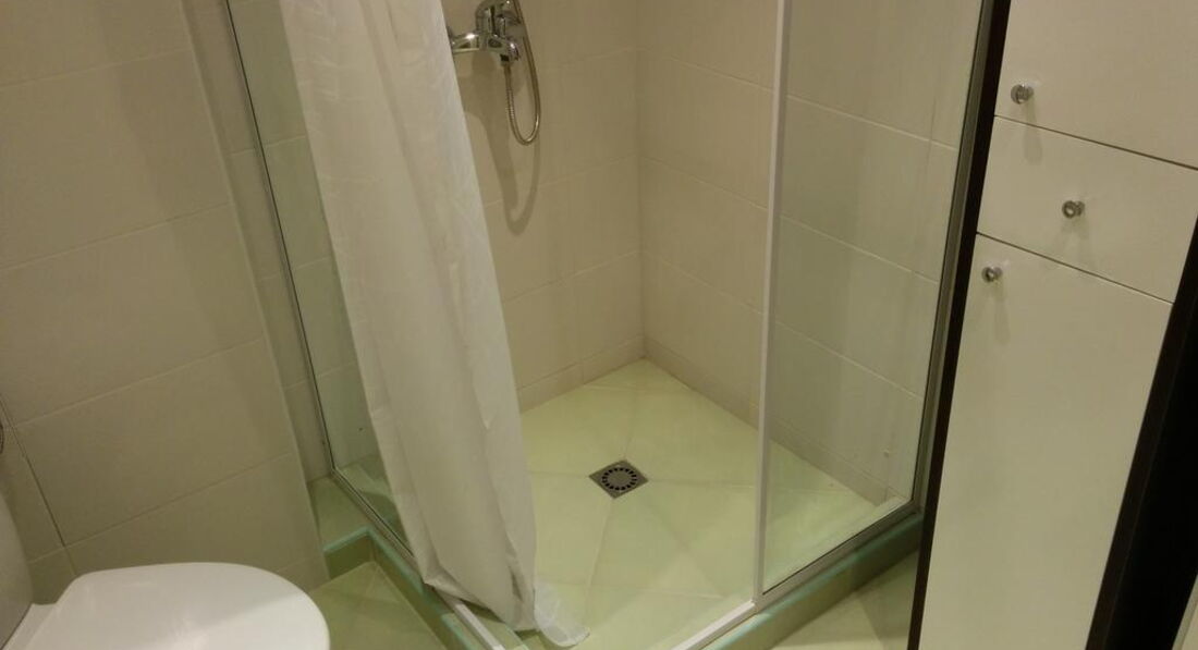 Заселение: приехали в отель рано утром, не смотря на то, что мы были после 20 часов пути на автобусе, причем в основном группа состояла из детей, нас заселили как положено после 13:00. Номера просторные, у нас номер был на 6 человек, двухкомнатный, с одним душем, но 2-мя туалетами. Не очень удобно ходить в душ к соседям, но пришлось смириться. Прикола с кухней у нас в комнате я не поняла, поскольку не было ничего кроме раковины и раздолбанной кухонной стеки, которая абсолютно была бессмысленна.