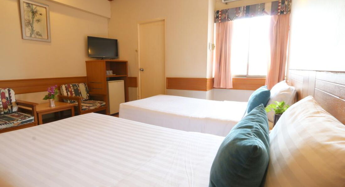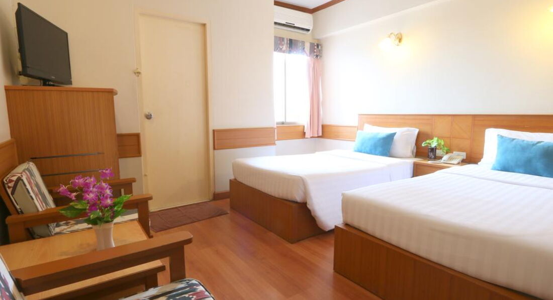 Територія та послуги: • басейн (на 5 поверсі, 7:00-19:00) • ресторан • ліфт • конференц зал • Wi-Fi у лобі (безкоштовно) • сейф – на ресепшен (безкоштовно) • інтернет-куточок з комп'ютером (1 хв – 1 бат) Розваги та спорт: • тренажерний зал (безкоштовно) • більярдний клуб (150 бат на годину) Живлення: • BB (сніданок – шведський стіл, 7:00-10:00) Пляж: Громадський піщаний пляж в безпосередній близькості від готелю. Парасольки та шезлонги – платно. Пляжні рушники – безкоштовно (на ресепшен).