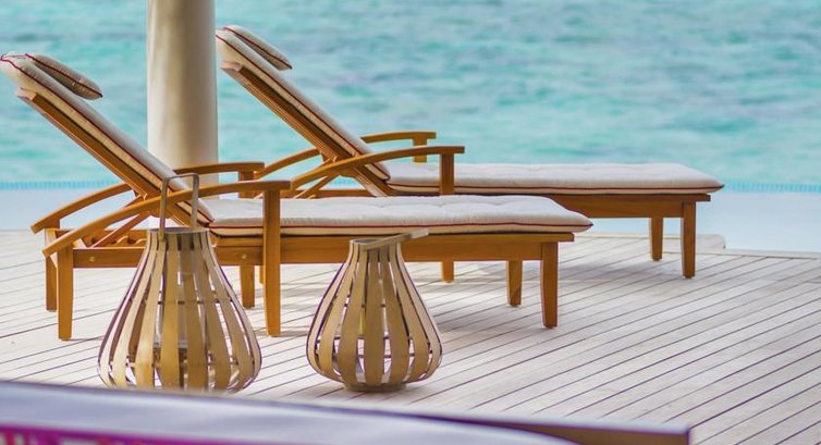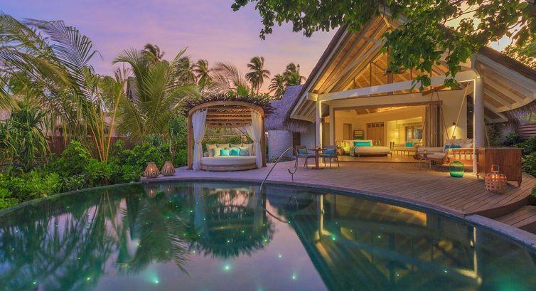2 Beach Residence (382 м2, макс. 3 або 2+1 чол.). Берегові вілли з приватним пляжем. Спальня з ліжком king-size, вітальня, частково відкрита ванна кімната з ванною та душем. Простора тераса з мальдівськими гойдалками, шезлонгами, відпочинковою тахтою, приватним басейном (60 м2, глибина – 1.2 м), кінотеатром на відкритому повітрі. Додатково: послуги батлера та особистого шеф-кухаря, одна екскурсія на півдня (на вибір гостей), CIP-сервіс в аеропорту Хулулі після прильоту та на вильоті.