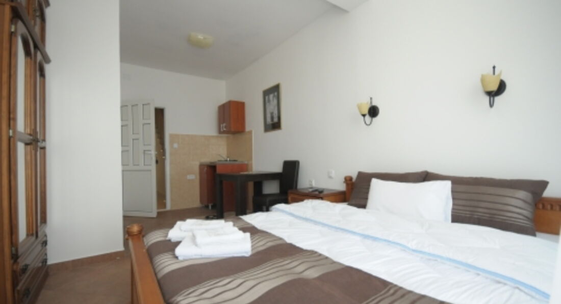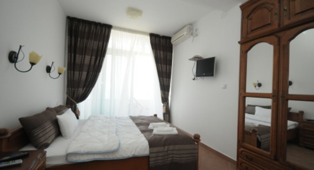 Пляж: 100 м від готелю, муніципальний, дрібна червона галька – пісок. Парасолі та лежаки - платні.