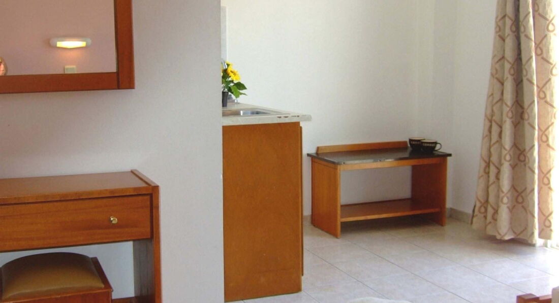 Типи номерів: • Studio (20-40 м2., Макс. Розм. 4 чол., Вид на басейн або сад, одна спальня і ванна, обладнаний кухонний куточок, вікна та балкони у всіх номерах).У номері: • душ • фен • індивідуальний кондиціонер (безкоштовно) • електрочайник • міні-холодильник (безкоштовно) • стіл і стільці • wi-fi (безкоштовно) • сейф (безкоштовно)